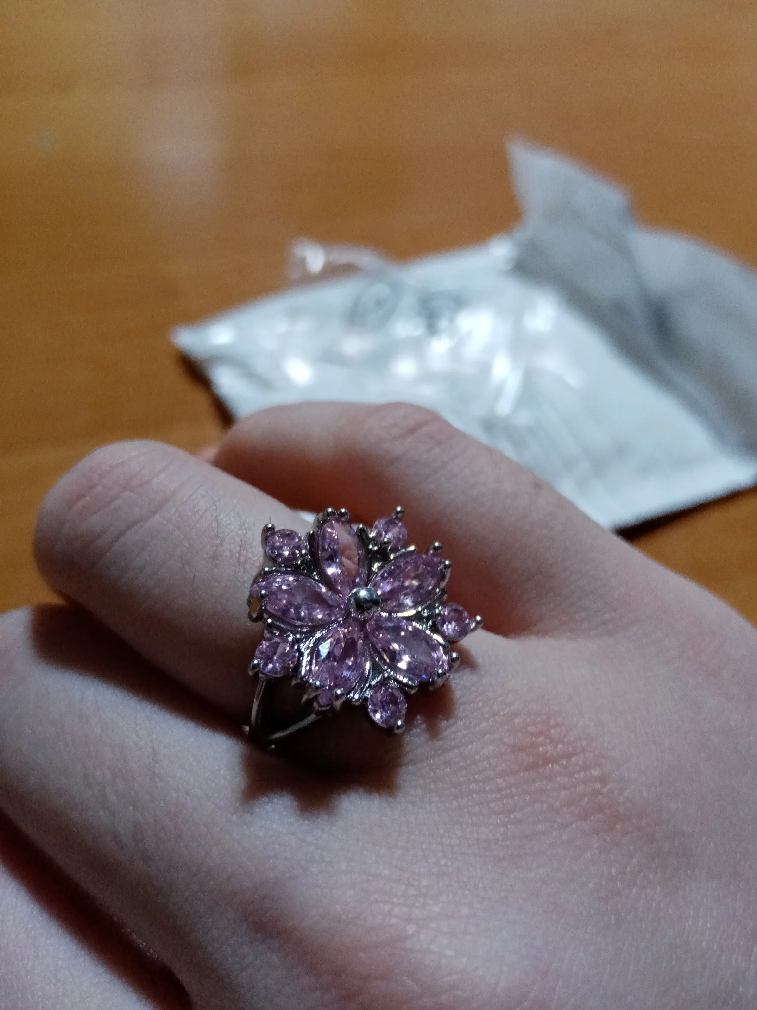 Милое женское кольцо розовый кристаллический камень, очаровательное...