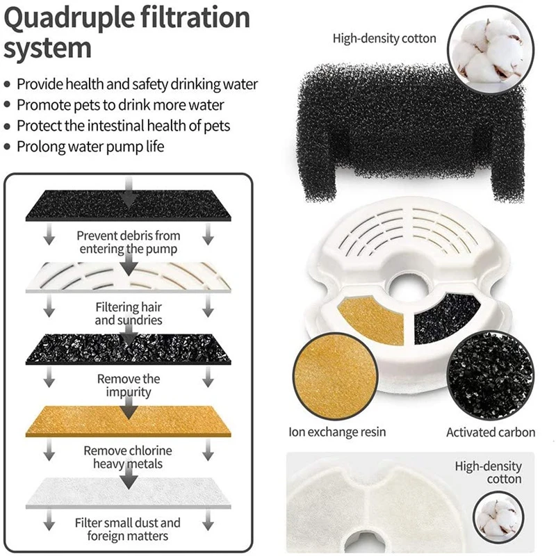 Большая Вместимость: 2,0 литров Объем бака для воды очень подходит для собак, кошек, и нескольких домашних животных. Без частого увлажнения, он может не только удовлетворить питьевые потребности кошек, собак, птиц и других домашних животных различных размеров, но и хранить воду в течение недели, позволяет вам выходить на улицу в течение нескольких дней, не беспокоясь о домашних животных.