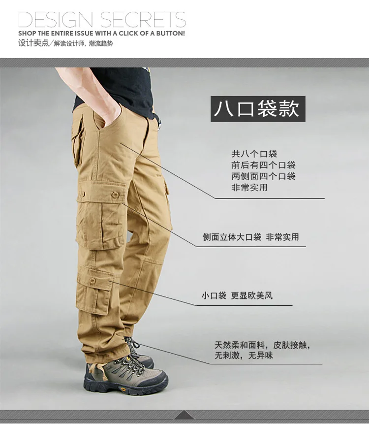 Брюки-карго мужские хлопковые, однотонные повседневные штаны в стиле милитари, штаны для активного отдыха, походов, путешествий, работы с несколькими карманами, 2022