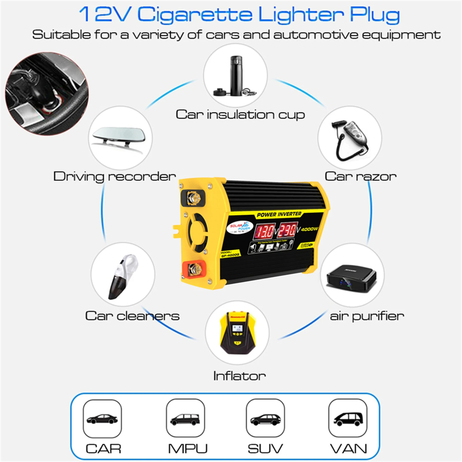 Автомобильный преобразователь напряжения 4000 Вт, 12 В в 220 В110 В...