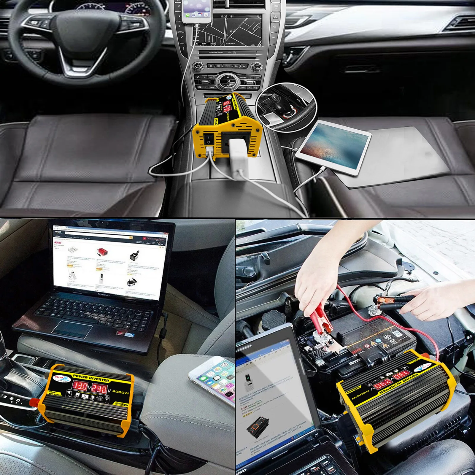 Автомобильный преобразователь напряжения, 4000 Вт, 12 В до в