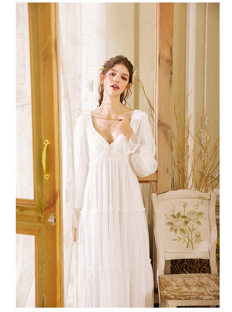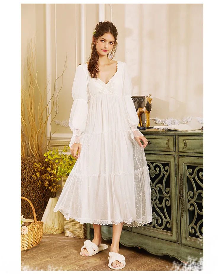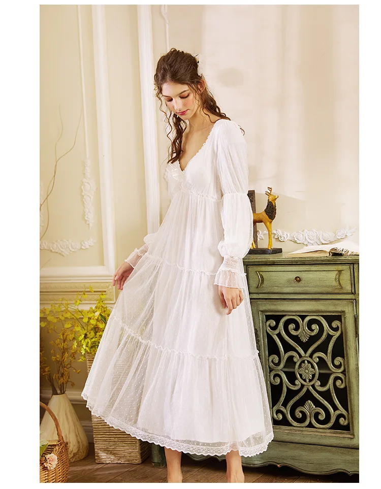 2. Женское сказочное Сетчатое Хлопковое платье с длинным рукавом, Длинное ночное платье, милое Романтическое Платье для сна, винтажная Ночная рубашка в викторианском стиле, Ночная одежда для принцесс.