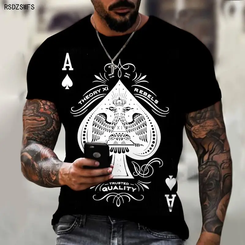 Забавная Мужская футболка в стиле хип-хоп с принтом карты покера и ...