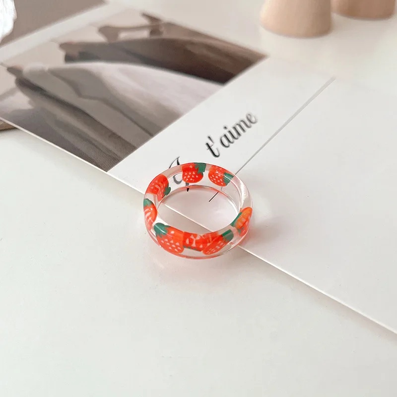 Корейская мода Свежие фрукты прозрачная смола акриловое кольцо для ...