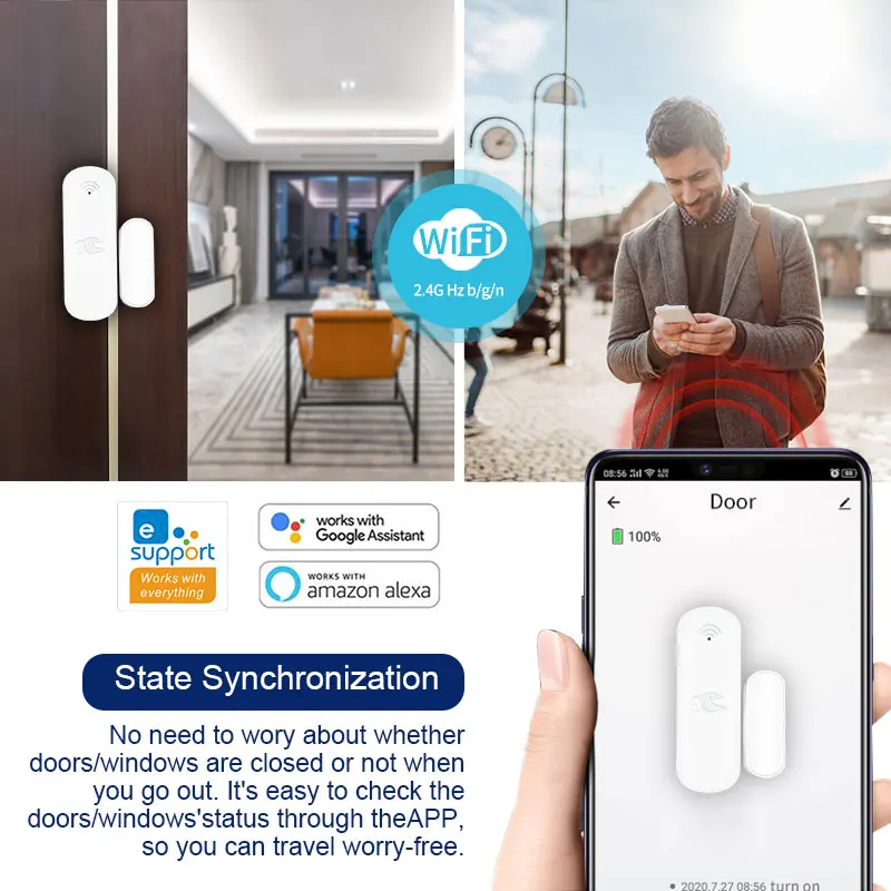 Когда датчик двери Wi-fi будет openedWi-fi, датчик двери подтолкнет оповещение пользователя или привязать к Wi-fi Смарт-датчикам