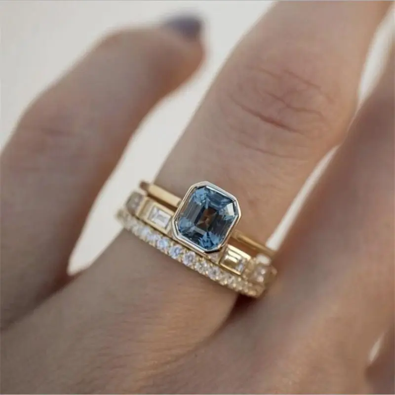 Набор обручальных колец с кристаллом кислотного синего цвета, 3 шт....