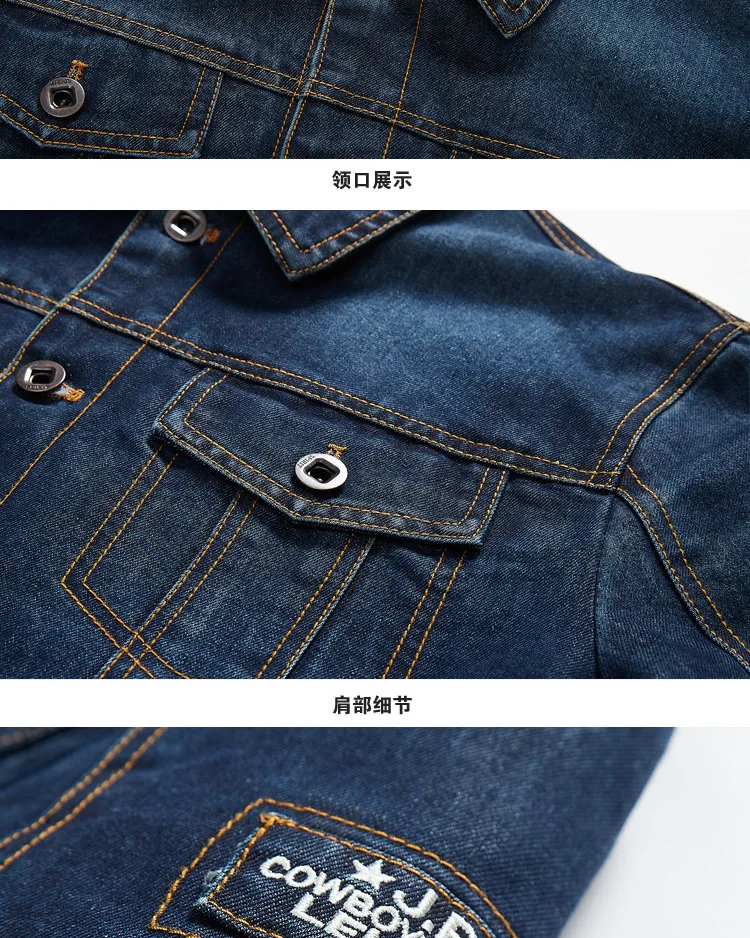 Мужская джинсовая куртка с вышивкой, однотонная однобортная куртка ...