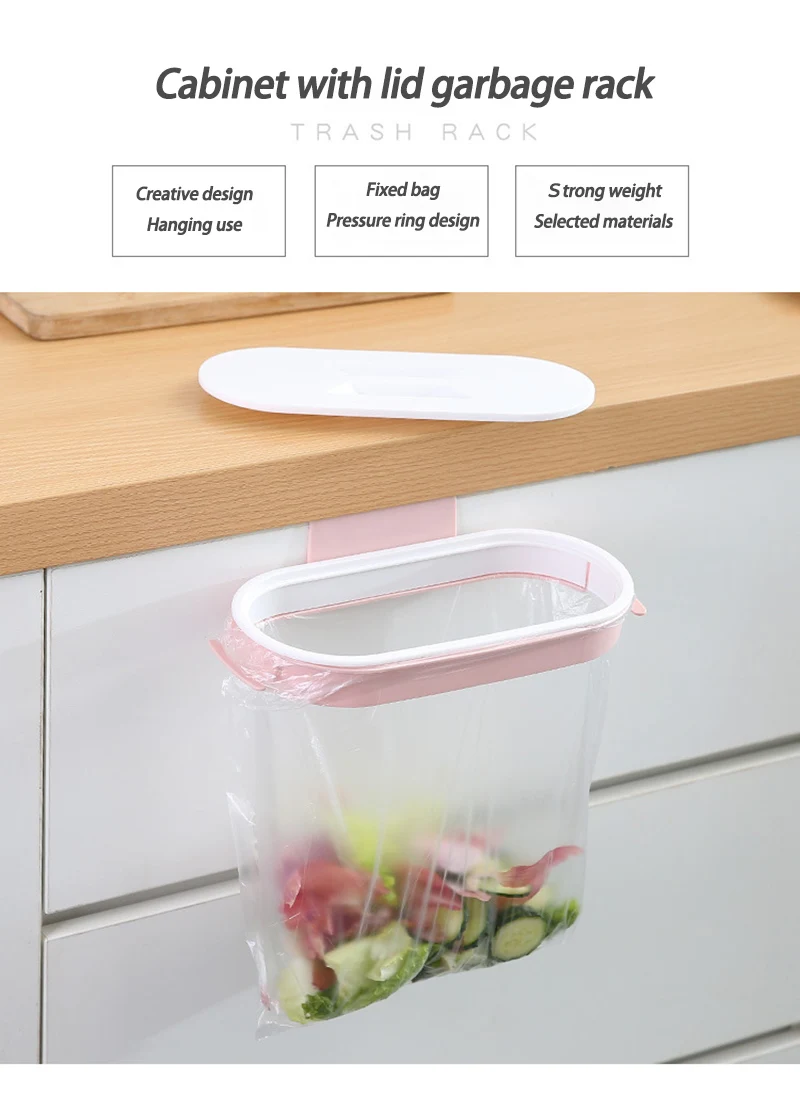 Портативный пластиковый мешок для мусора, вешалка для кухни, хранение мусора с крышкой, экономия пространства, кухонный шкаф, дверь, корзина для мусора, стеллажи