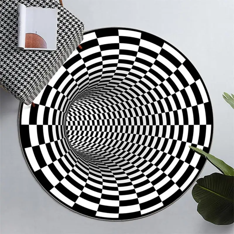 3D круглые ковры для гостиной, черный, белый стерео коврик с эффектом зрения, 3D ковер для спальни, домашний декор, напольные модные коврики, ковер