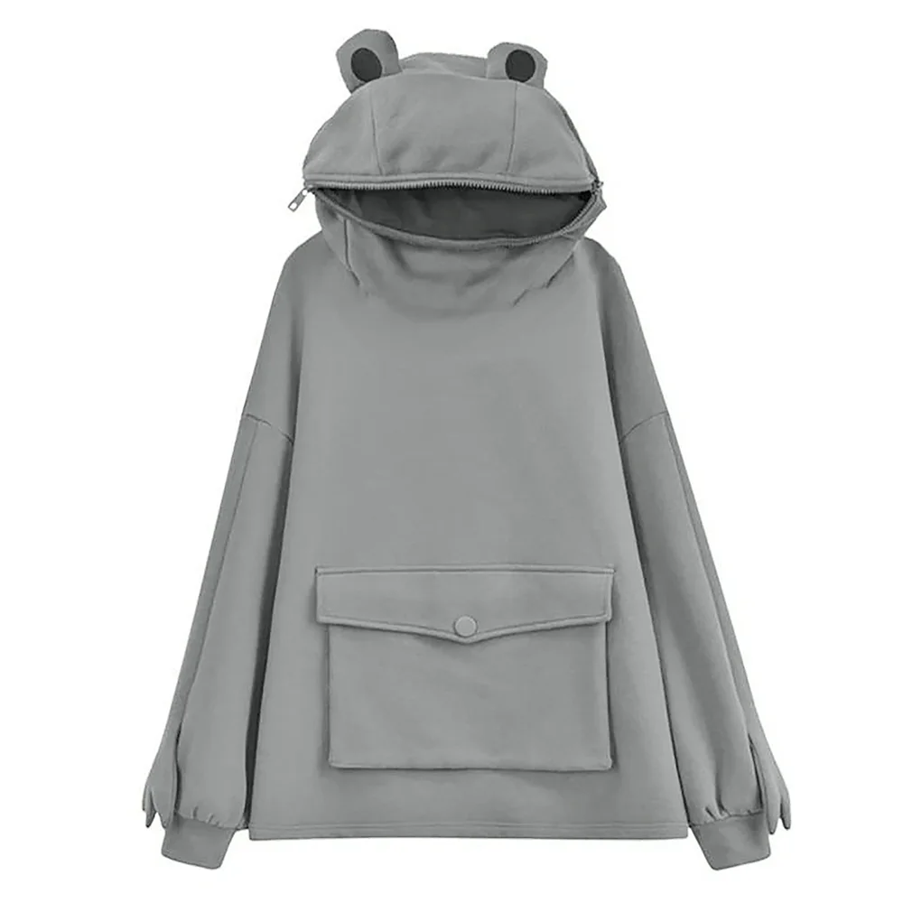 Женская толстовка в стиле Харадзюку, пуловер в виде лягушки, зимний...