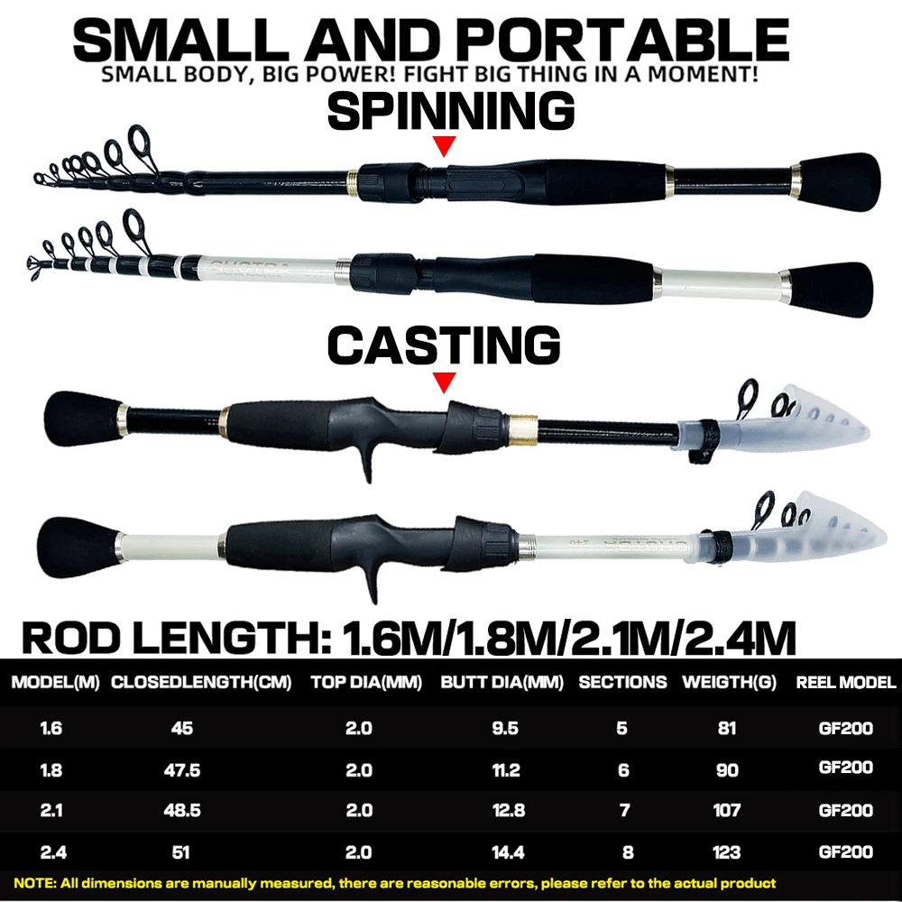 Набор для рыбалки GHOTDA, набор для рыбалки, кастинговое удилище и катушка, комбинированный портативный ультралегкий дорожный лодочный удилище, однорыболовная удочка