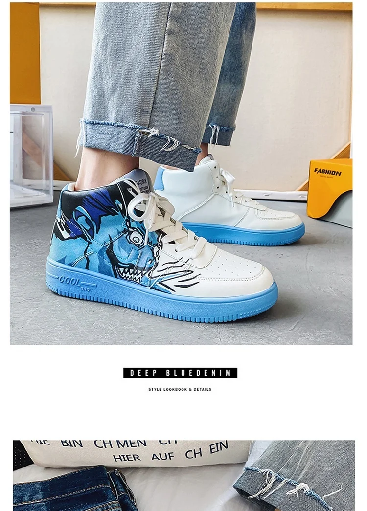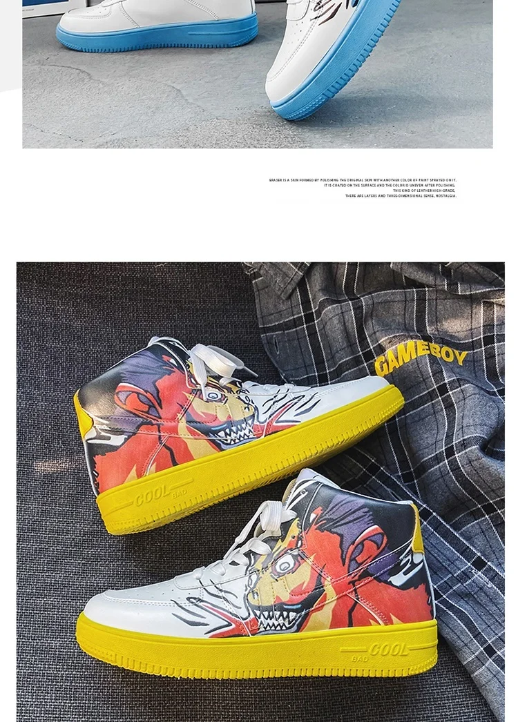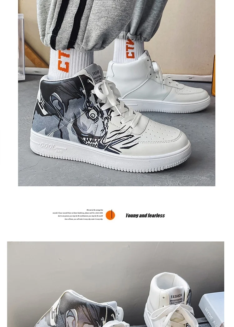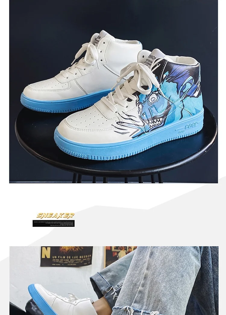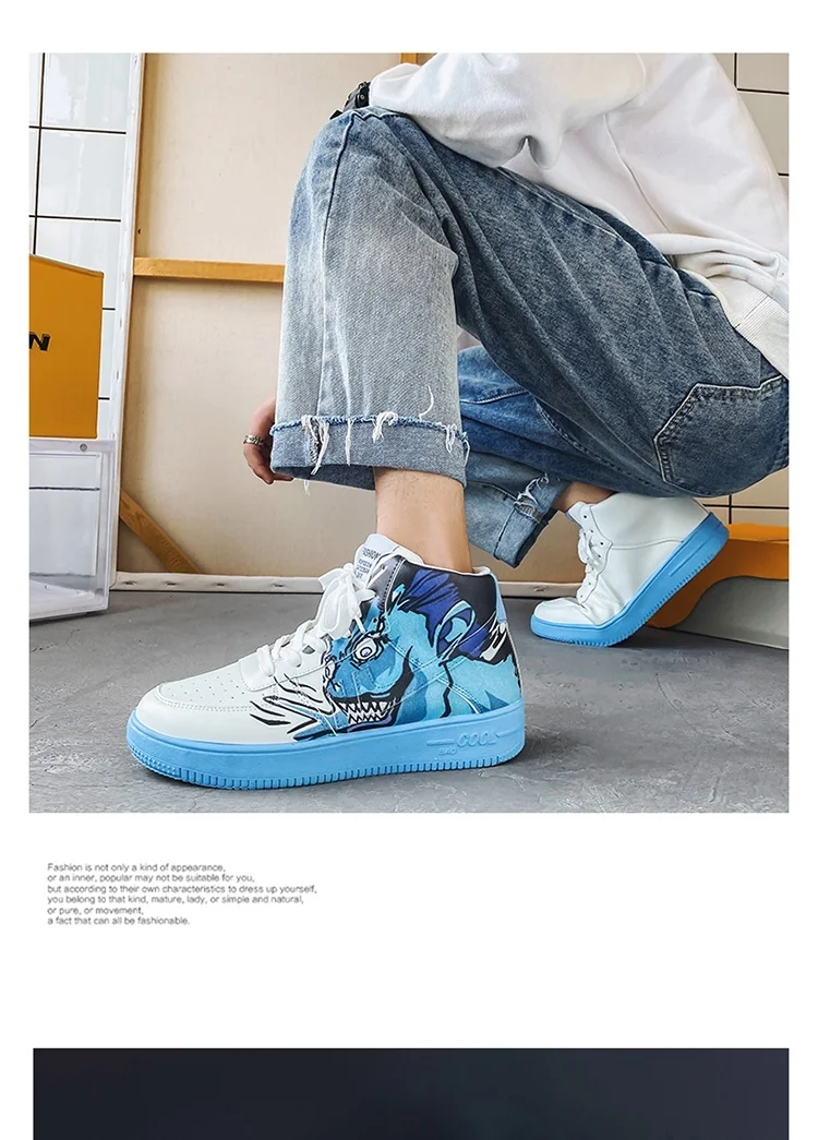 Мужские кожаные кроссовки с аниме-рисунком, высокие берцы для тенни...