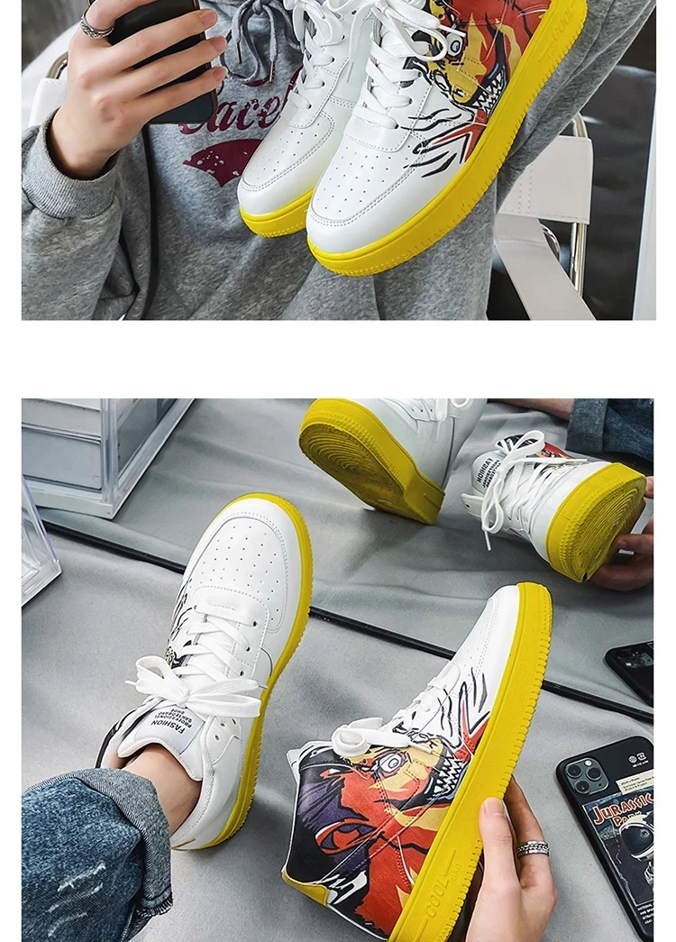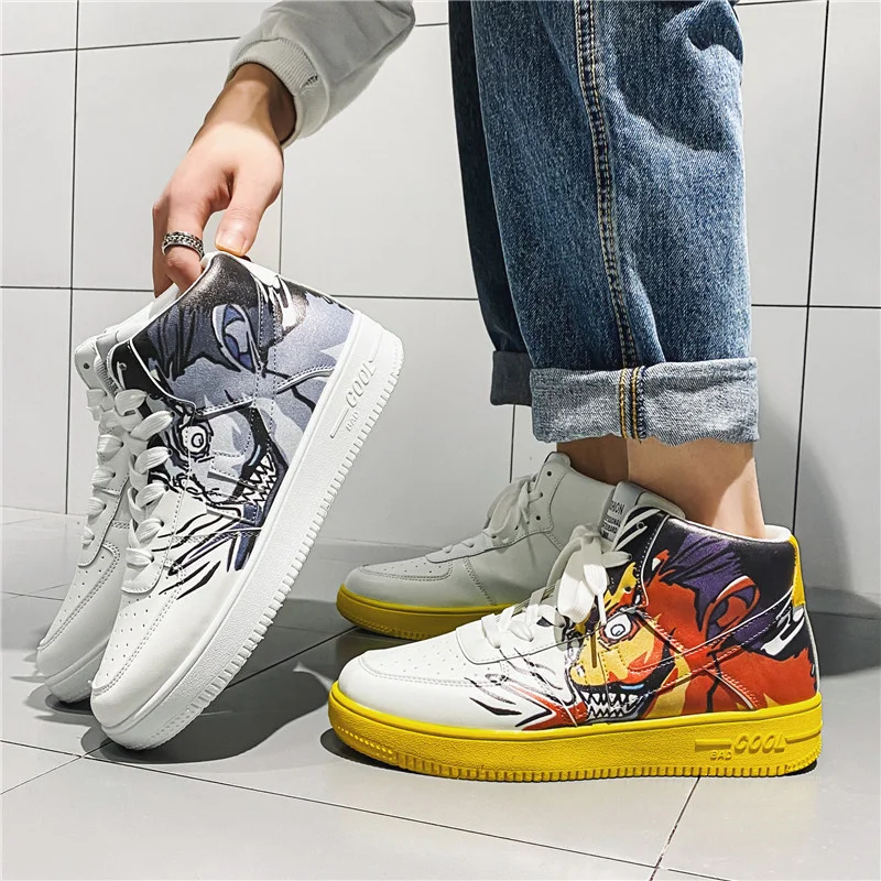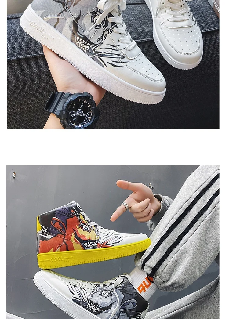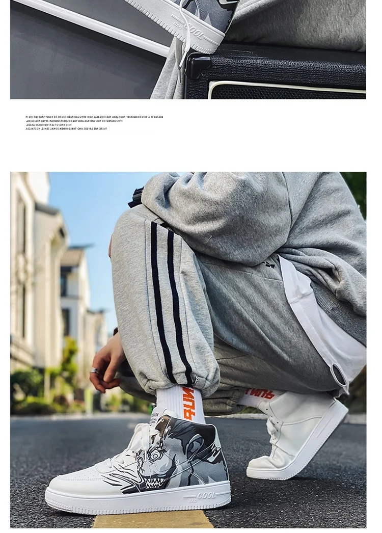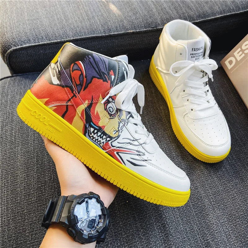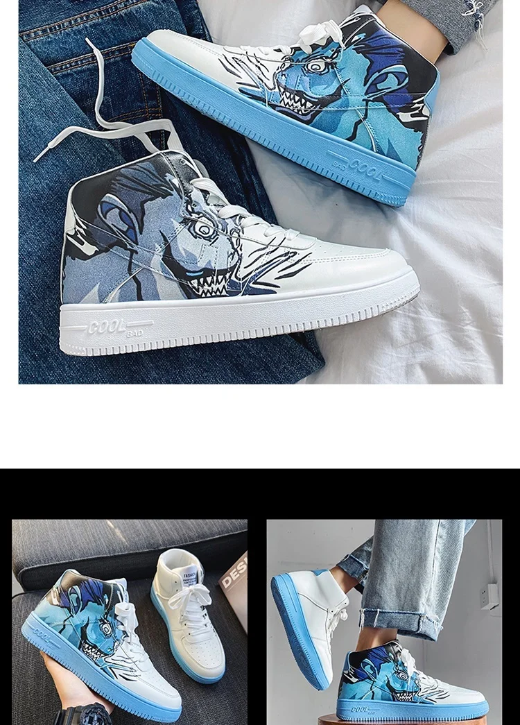 Мужские кожаные кроссовки с аниме-рисунком, высокие берцы для тенни...