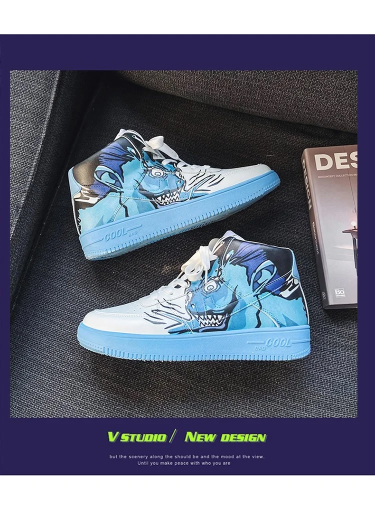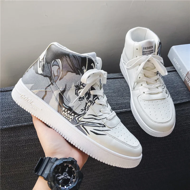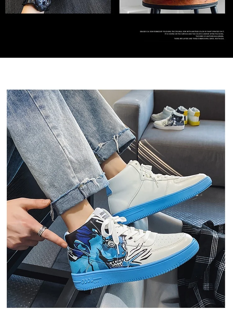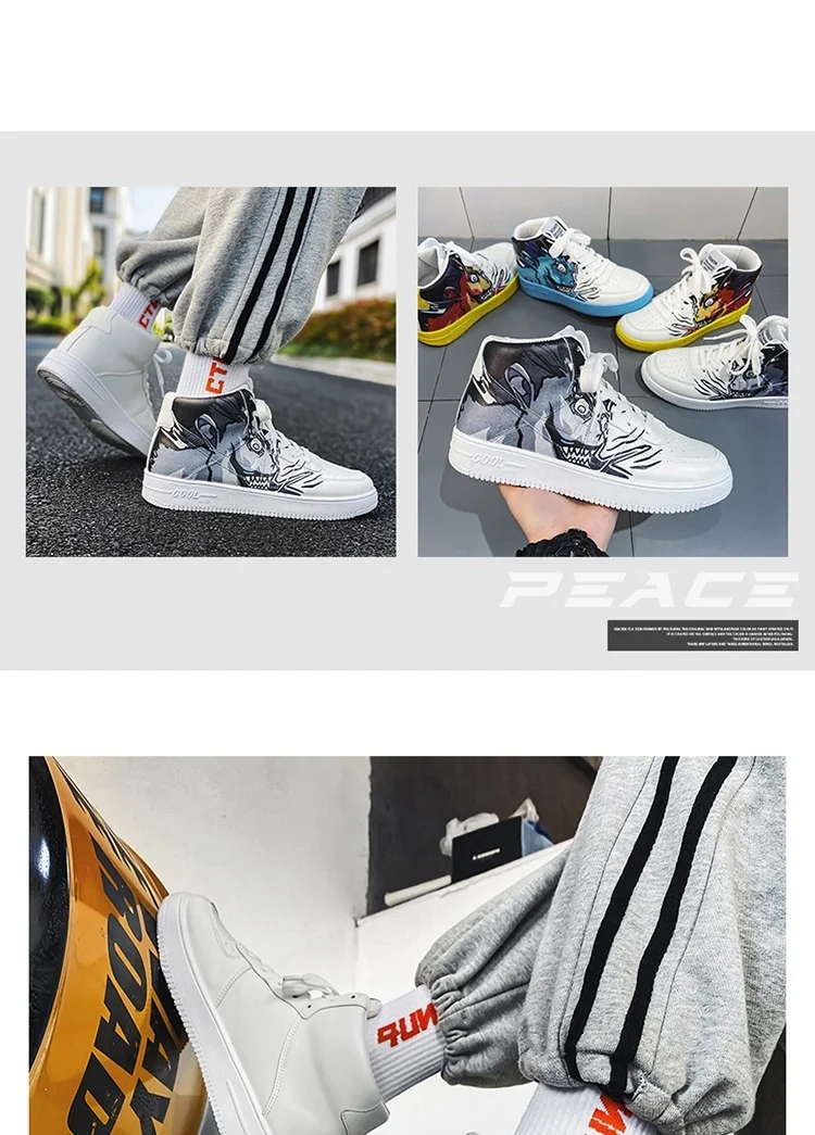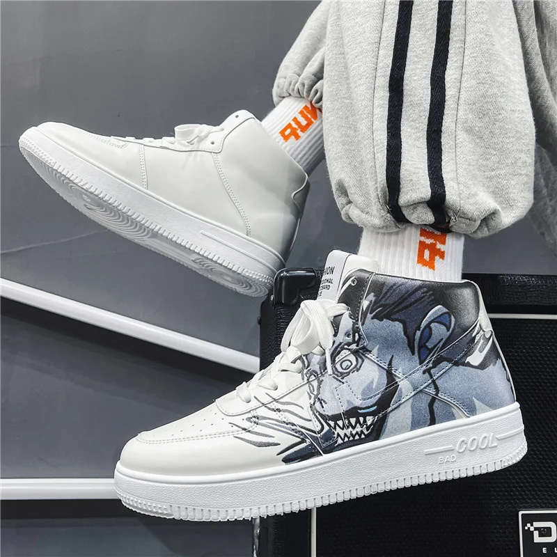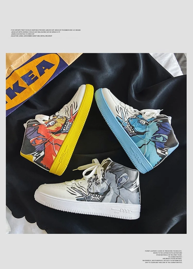Мужские кожаные кроссовки с аниме-рисунком, высокие берцы для тенни...