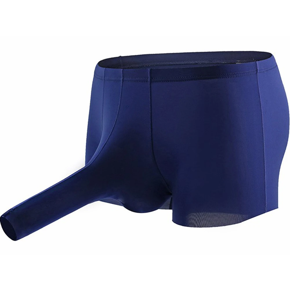 Гладкое нижнее белье из ледяного шелка, боксеры с длинным слоном, мужские шорты со средней посадкой, сексуальные дышащие трусы-боксеры с открытым багажником, A50