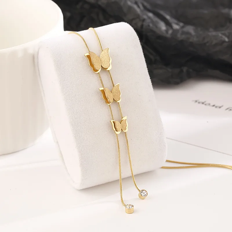 Ювелирный Комплект из нержавеющей стали 316L с золотым матовым покрытием, Бабочка, Комплект бижутерии для женщин, Комплект для женщин