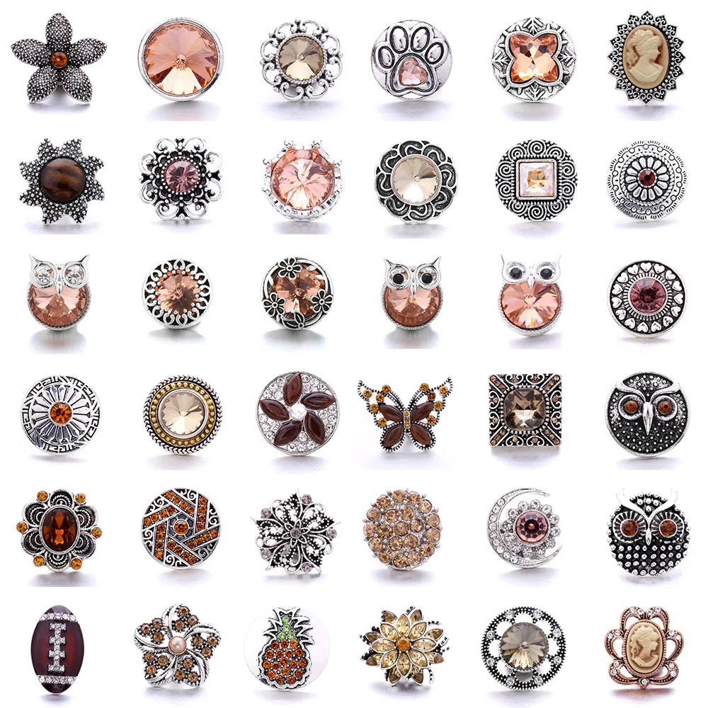 5 шт.лот, новые ювелирные изделия с застежкой, коричневые кристаллы, горный хрусталь, сова, цветок, 18 мм, металлические кнопки, подходят для самостоятельной сборки, 18 мм, браслет, ожерелье