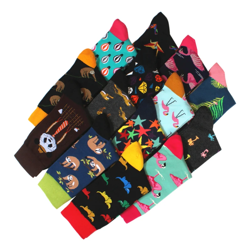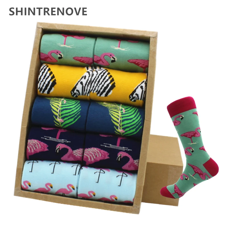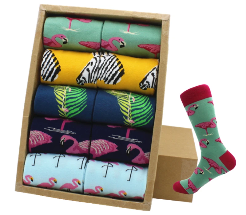 Брендовые качественные мужские носки, повседневные носки из чесаного хлопка разных цветов с принтом фламинго, компрессионные смешные носки для мужчин