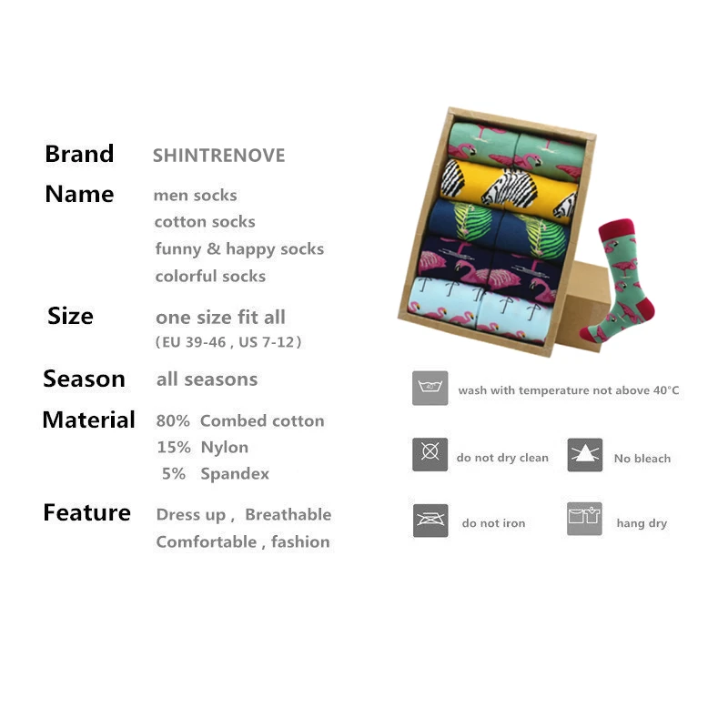 1. Перед стиркой. Рекомендуется Стирать в холодной воде, не подвергать химической чистке.2. Наши носки содержат хлопковое волокно, и нельзя избежать усадки при стирке, и после многократного теста на промывание воды они растянутся, как только вы их снова наденете.3. Правильное ношение и чистка могут продлить срок службы носков.