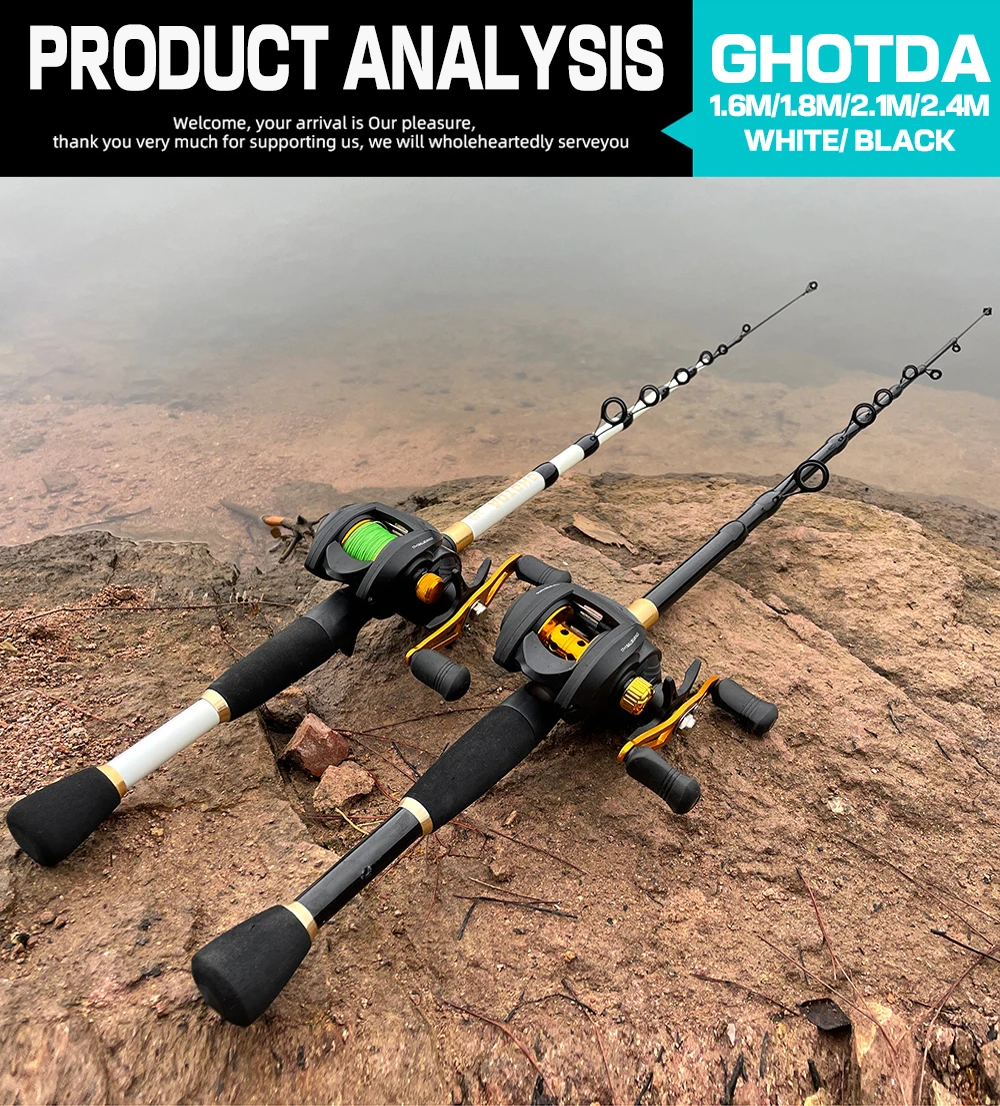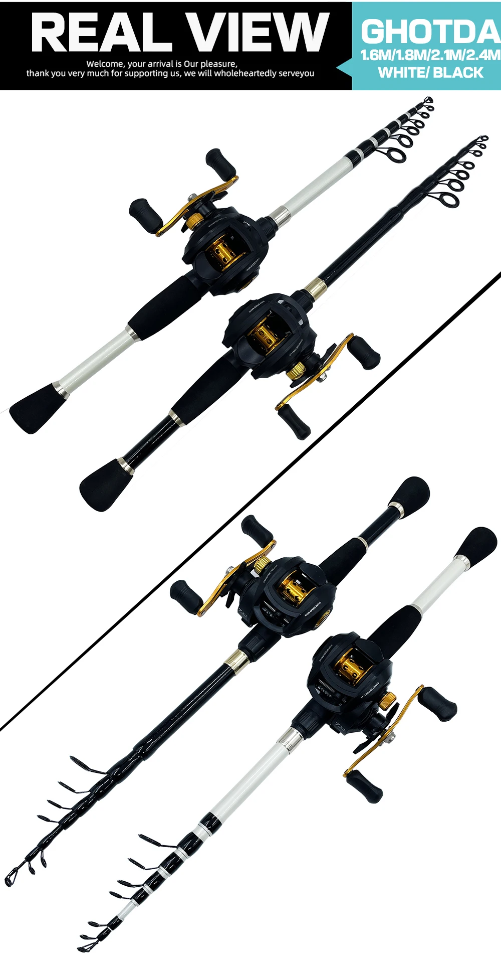 Спиннинговаякастинговая телескопическая Рыболовная катушка Ghotda с ЧПУ грузоподъемностью 1,6 м, 1,8 м, 2,1 м, 2,4 м