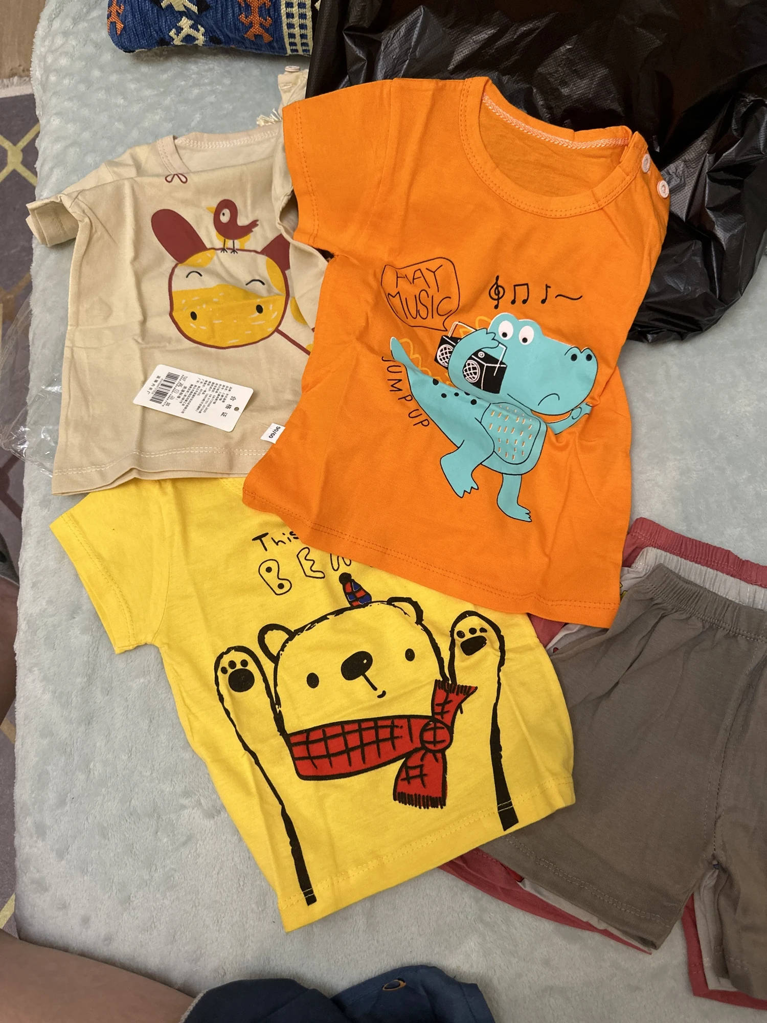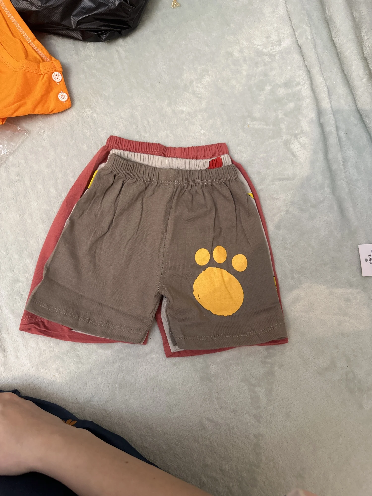 Заказывала три комплекта 90 размера. Малог того, что один комплект прислали вообще с розовыми шортами. Так еще и все шорты по размеру абсолютно разные. Комплект с мишкой пришел 80 размера. Ребят, может там уже соберетесь с силами мысли и начнете работать? Заказ шел 2 месяца. Возможно, от продавца это не зависит, но так еще и пришла посылка в другой конец города, а не на указанный адрес. По качеству ничего не могу сказать, своих денег стоит, принт яркий.