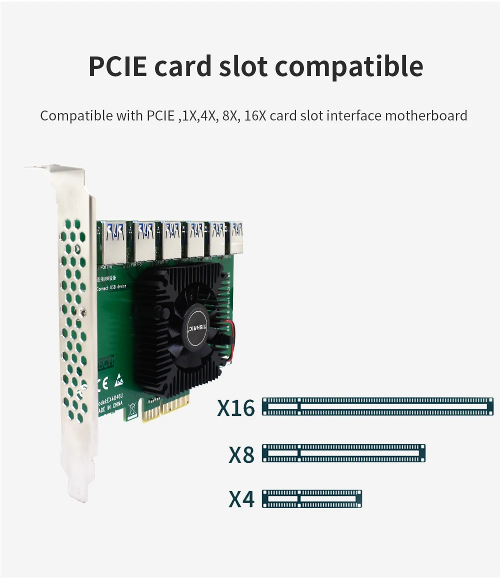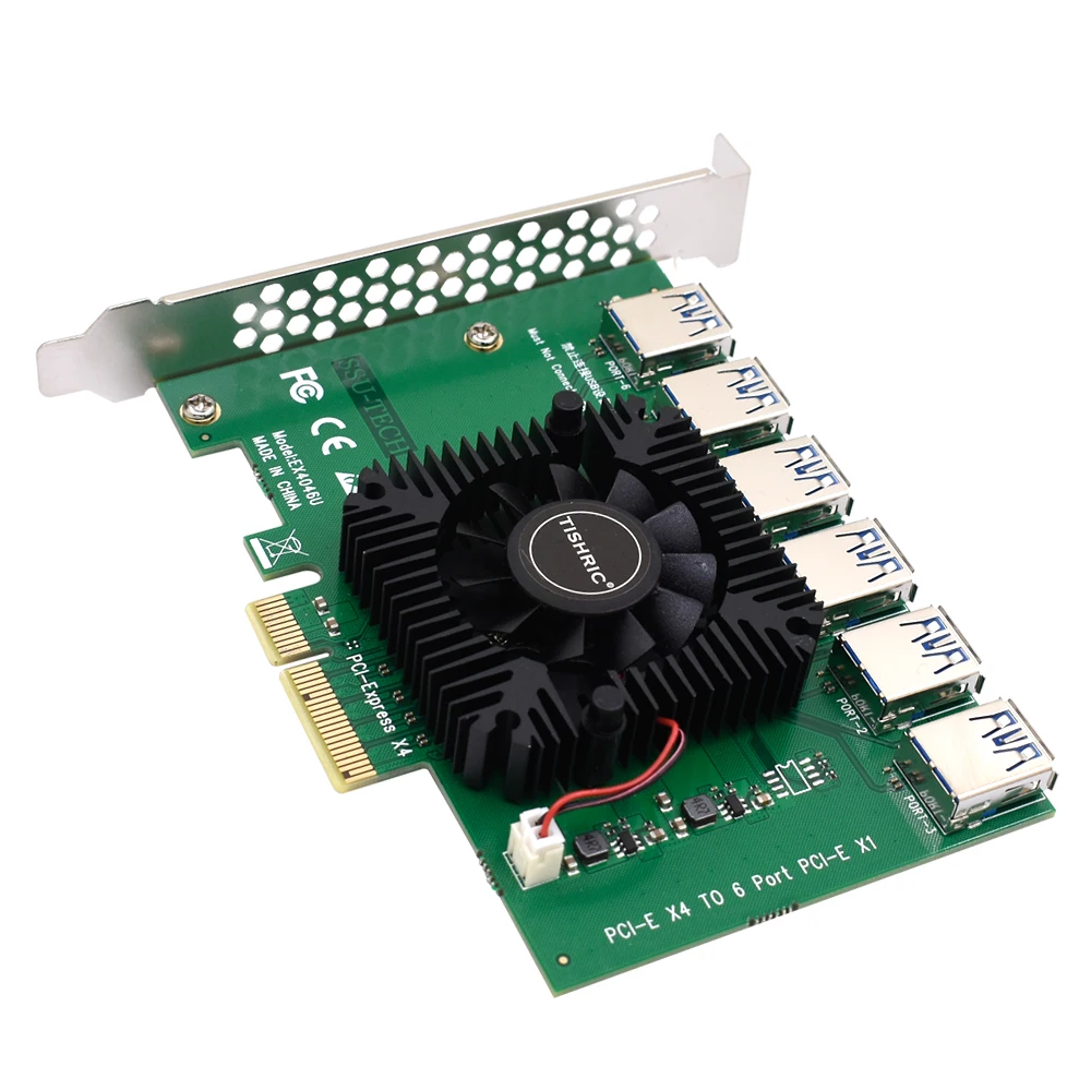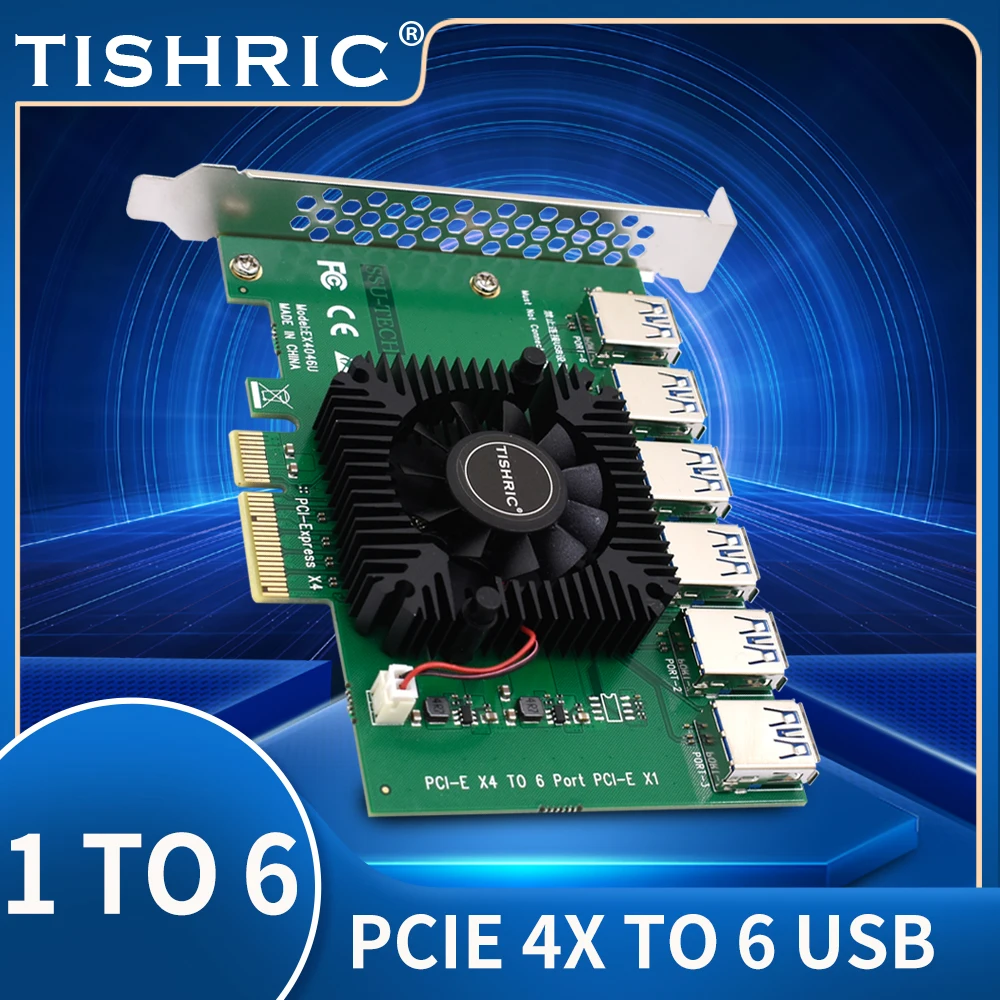 Плата расширения TISHRIC Pci Express, усилитель Pcie 4x на 6 Usb 3,...