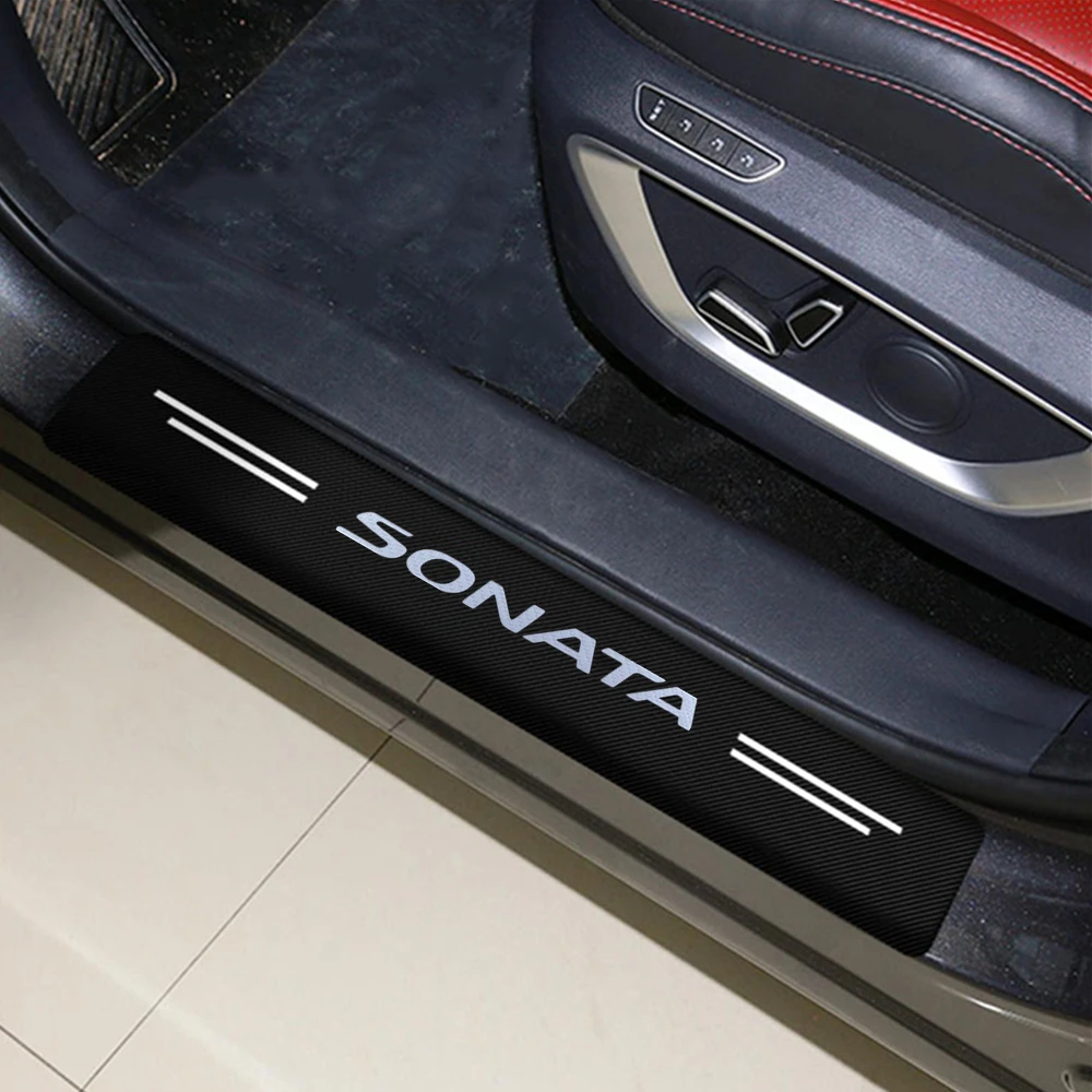 4 шт., автомобильные наклейки на порог из углеродной кожи для hyund...