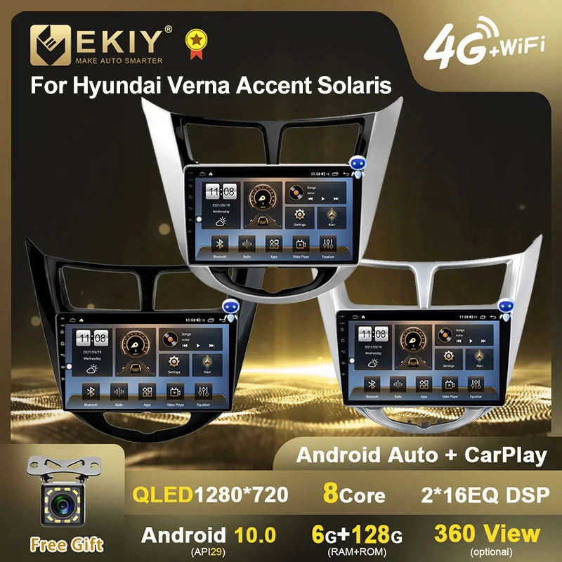 Автомагнитола EKIY T7 QLED DSP Android для Hyundai Solaris Accent Verna I25 2010 - 2016 мультимедийный плеер GPS Navi Stereo 2din DVD