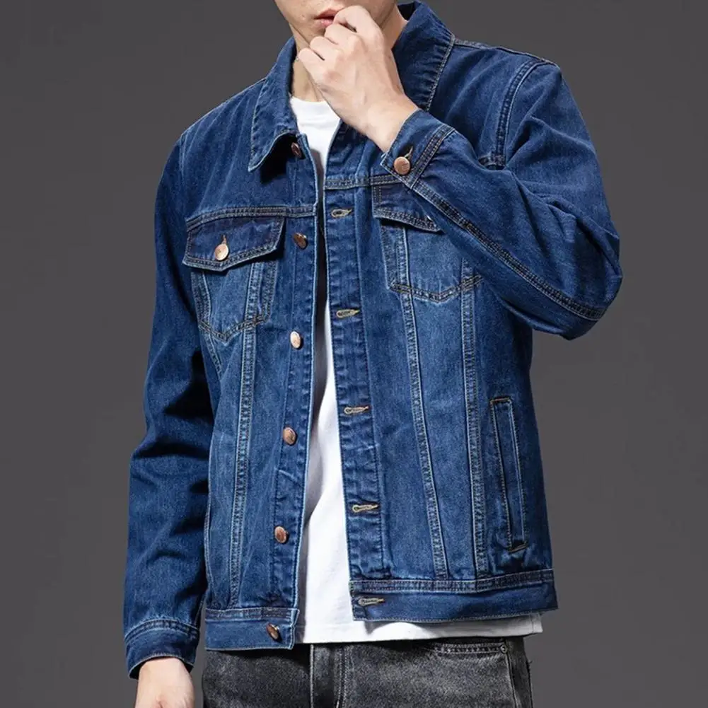 Весенне-осенние куртки для мужчин, джинсовые пальто, повседневные однотонные однобортные куртки с лацканами, мужская тонкая верхняя одежда