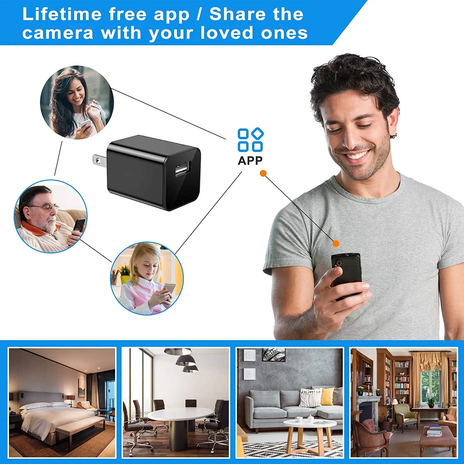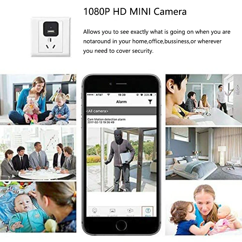 О товаре1. Зарядное устройство USB: эта камера безопасности также является зарядным устройством USB, она может записывать видео в формате full HD 1080P во время зарядки устройства, следить за ребенком дома, в офисе или автомобиле камеры безопасности, домашних животных, няня, воры или сотрудники.2. Обнаружение движения: при обнаружении движения, эта камера будет записывать видео Full HD 1080P, экономя больше места для хранения, чем режим циклической записи.3. Штепсель быстрого подключения и воспроизведения: Просто вставьте микрокарту, подключите ее к розетке или блоку питания или usb-порту для автоматической записи!4. Циклическая запись и автоматическое сохранение: эта камера безопасности имеет функцию циклической записи. Видеофайл автоматически сохраняется каждые 5 минут. Когда карта памяти заполнена, новейший файл перезаписывает старый файл. Вы никогда не пропустите важные вещи, которые вы хотите знать. Напоминание: мы предлагаем организовать файлы вовремя, чтобы сохранить важные видеофайлы.)5. Для работы в качестве реального настенного зарядного устройства USB: он может записывать звук. Это зарядное устройство для мини-смарт-камеры может работать как настоящее настенное зарядное устройство USB.Особенности:1. Угол обзора 90 градусов2. Объем памяти до 128 ГБ3. Сжатие кода: H. 2644. Формат файла: AVI5. Время записи: 7 / 24 рабочих во время зарядки6. Входная мощность: 5 В 1A-2A7. Разъем: USB 208. Размеры корпуса 43*31 31 мм (Д "ш" в)9. Вес 50 гПримечание: на поверхности вилки имеется защитная пленка, которая делает ее старой. Все продукты не используются. Если оторвать защитную пленку объектива, она выглядит новой.Посылка:1 мини wifi камера,1 х РуководствоКард-ридер-1 шт.1 x pin