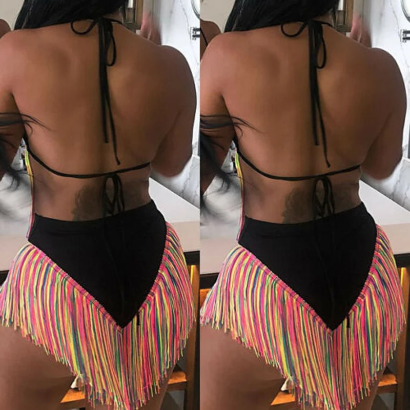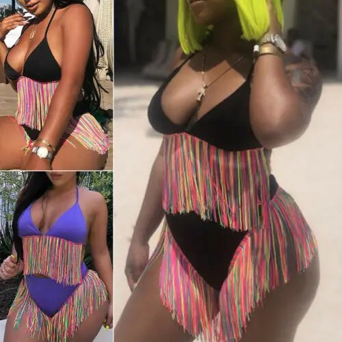 Женский раздельный купальник с бахромой, бикини с лямкой на шее и высокой талией