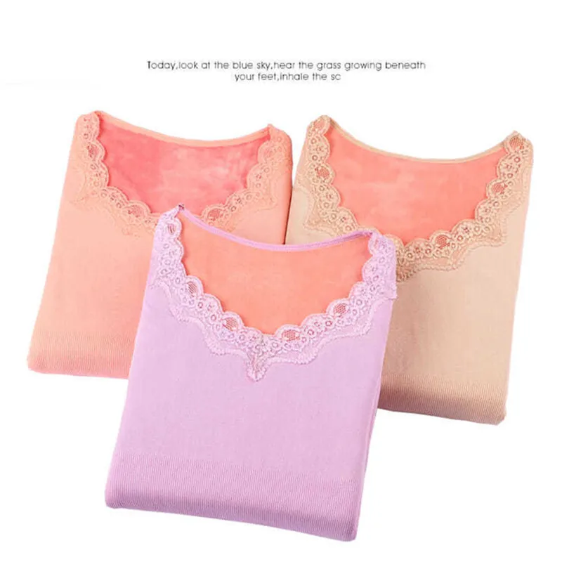 Женская зимняя Термофутболка с бархатной подкладкой, Мягкий Топ, сексуальное кружевное женское плотное облегающее нижнее белье, повседневная женская футболка, футболки