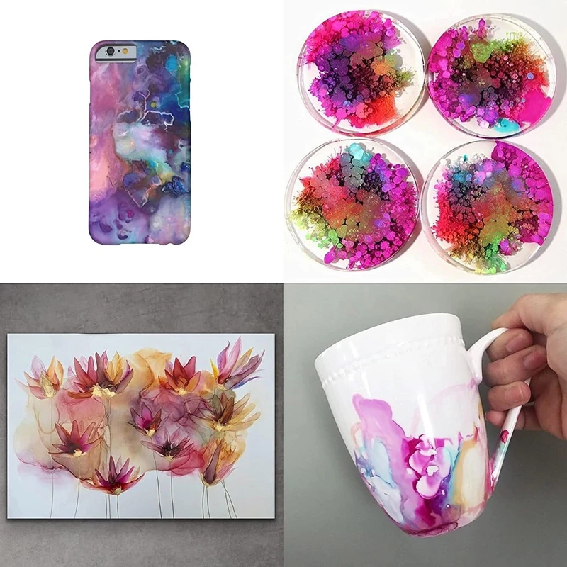 Идеально подходит для начинающих и опытных людей, эти высоконасыщенные, быстро высыхающие спиртовые чернила запечатываются в бутылке без утечки, что позволяет более точно контролировать капли чернил, чтобы вы могли каждый раз получать идеальные оттенки. Вы можете создать завораживающие узоры в прозрачной эпоксидной смоле. (Примечание: Добавление слишком большого количества чернил повлияет на отверждение смолы)