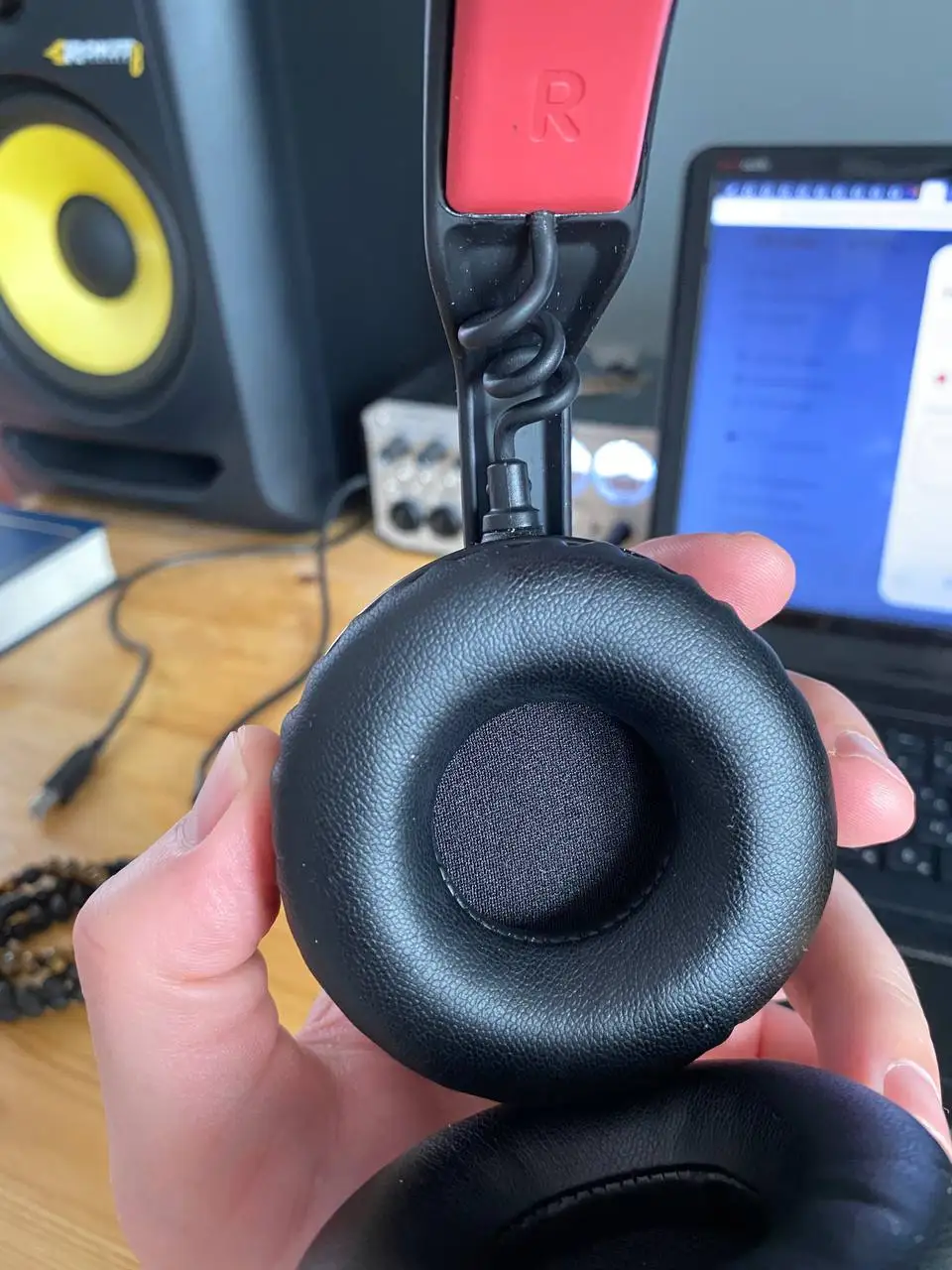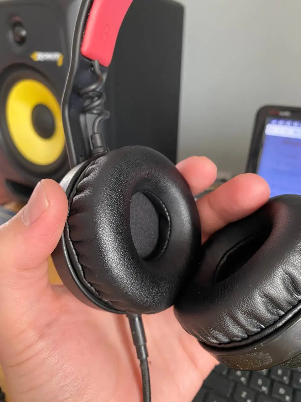 Цвет: красныйМатериал: Плотная кожа и пена с эффектом памяти (внутри)Пространство для прослушивания: 30 ммТолщина: 27 мм