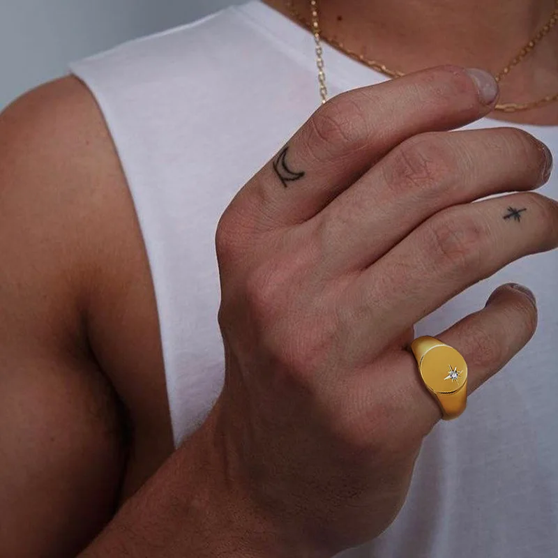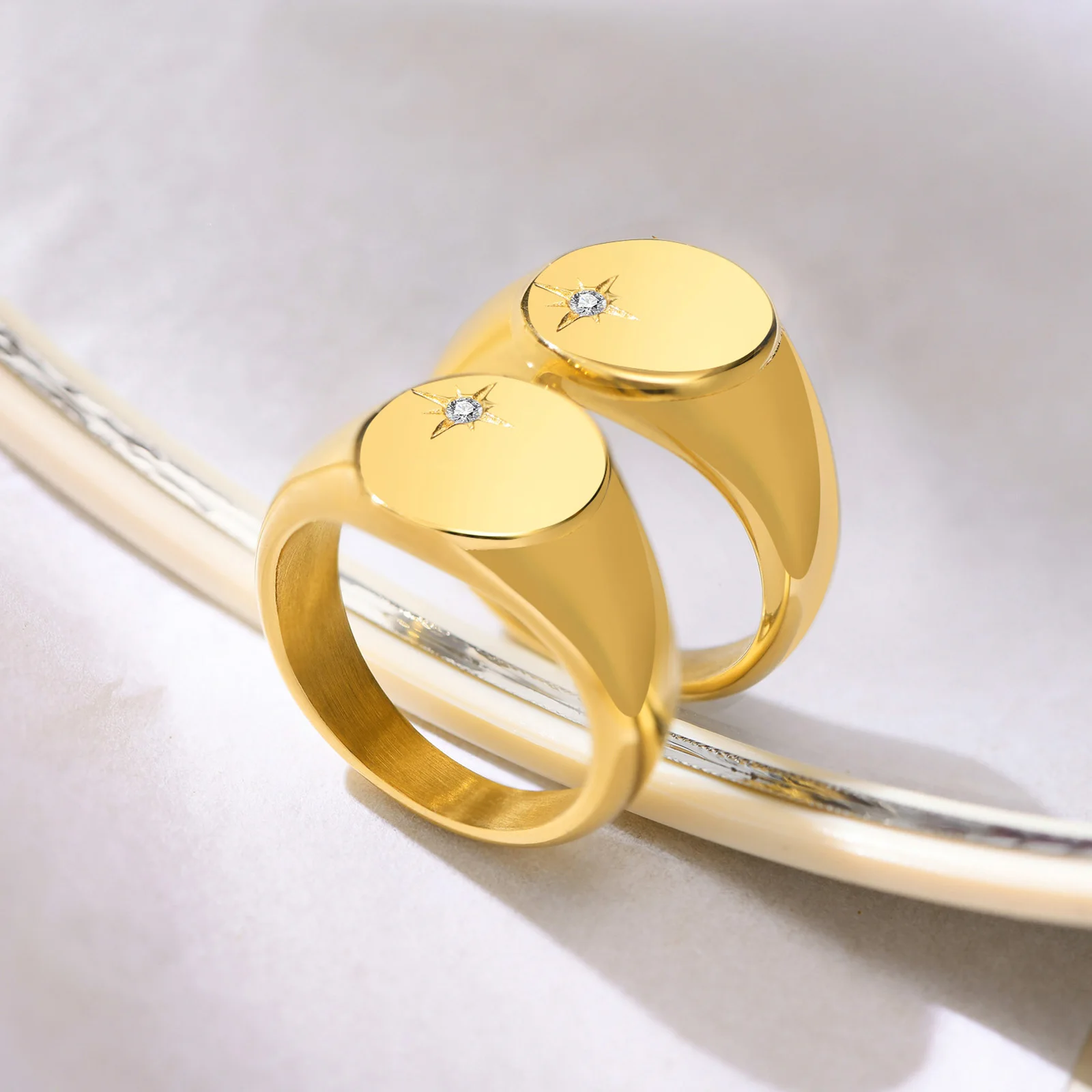 Женское и мужское кольцо Star Signet North Star, кольцо золотого цвета, изысканное кольцо, эффектное кольцо