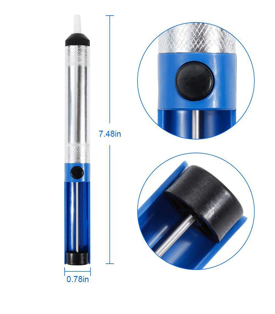 Портативная паяльная присоска, Вакуумный паяльник, инструменты для демонтажа, мини-ручка, алюминиевый металлический отсос, всасывающий оловянный пистолетХарактеристики:Диапазон регулирования температуры: 1 ℃Область применения: удаление оловаВес нетто: прибл. 40 гДлина: прибл. 200 мм/7,87''Материал: половина алюминия, половина пластика/весь алюминийМаксимальное всасывание: 30См-рт. Ст.Цвет: синий/золотойРуководство по эксплуатации:1. Поставьте оловянный всасывающий поршень вниз, чтобы застревать.2. Нагревательные паяльные соединения для плавления припоя с электрическим паяльником.3. Извлеките железо и быстро Положите оловянную пасту, паяльную присоску и нажмите кнопку.4. Если он не чист в одно время и может быть повторен много раз.Использование навыков:1. Для обеспечения хорошей припоя присоска поршневого уплотнения. Перед электричеством, с пальцами, чтобы подключить отверстие припоя присоска, припой присоска, чтобы нажать кнопку, если поршень не легко поп на место, что уплотнение хорошее.2. Апертура олова сукционер головки различных размеров, выберите соответствующие спецификации.3. Оловянная сукционер носит голову, следует заменить новый.4. Паяльная паста погружается в немного канифоли перед контактом с припоем для улучшения текучестности припоя.5. Контактные подушечки для головки немного длиннее, когда пайка расплавляется, припой соединяется как центр, затем Высылается по часовой стрелке, чтобы нарисовать круг, а затем нажмите кнопку оловянный всасыватель.Примечание:Возможны отклонения в 1-3 см вследствие измерений вручную.Из-за различных дисплеев и различного светильник, изображение может не показать фактический цвет товара. Спасибо за понимание.
