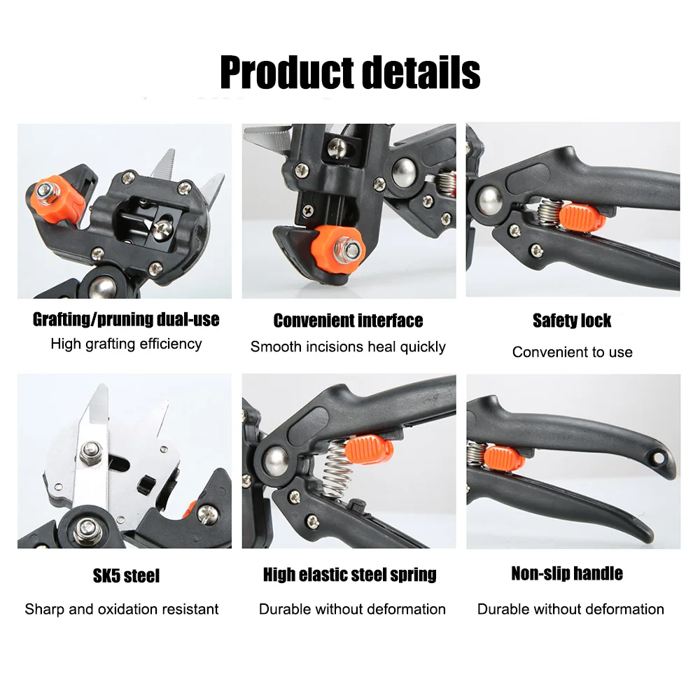 Особенности:1: Rootstock и scion легко адаптируются к u-образной резке или Ω-образной резке, быстрое заживление2: сотрудничаем с энергией. Метод прививки лучше, чем традиционная экономия3: можно заменить энергосберегающие и трудосберегающие лезвия4: используйте ножницы для обрезки, чтобы отрезать меньше веток на заводе5: Высококачественная пружина6: лезвие высокого качества7: Высококачественная нейлоновая ручка8: садовые ножницы и ножницы для прививания фруктовых деревьев. Ножницы быстрые и могут увеличить скорость работы.9: Прививка 3-12 мм ветвей, корыта деревьев, сухих ветвей и твердых ветвей не подходят для использования.