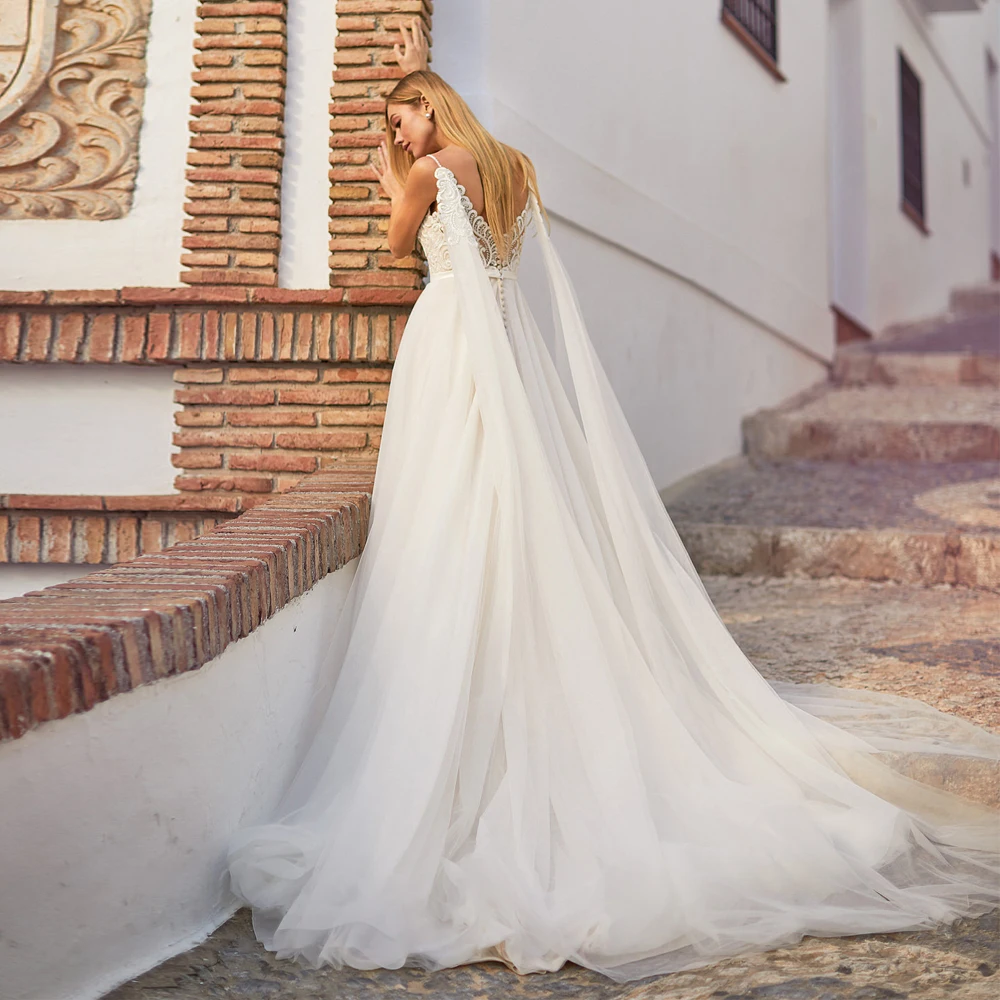 Простое свадебное платье из тюля, элегантное ТРАПЕЦИЕВИДНОЕ ПЛАТЬЕ на бретелях-спагетти с V-образным вырезом, аппликацией, бисером, открытой спиной и пуговицами, 2022