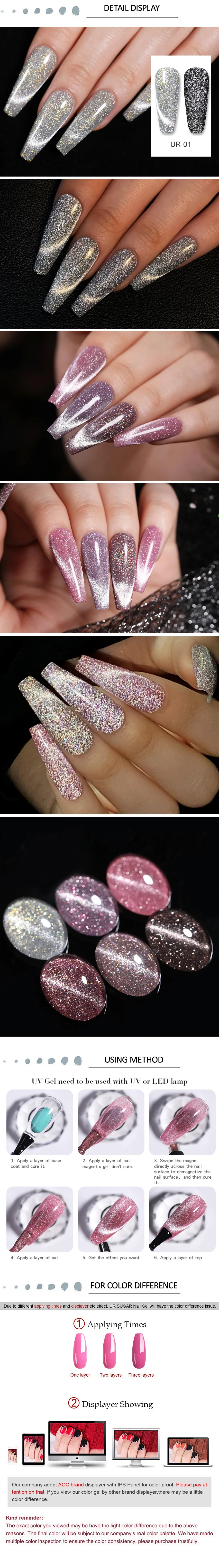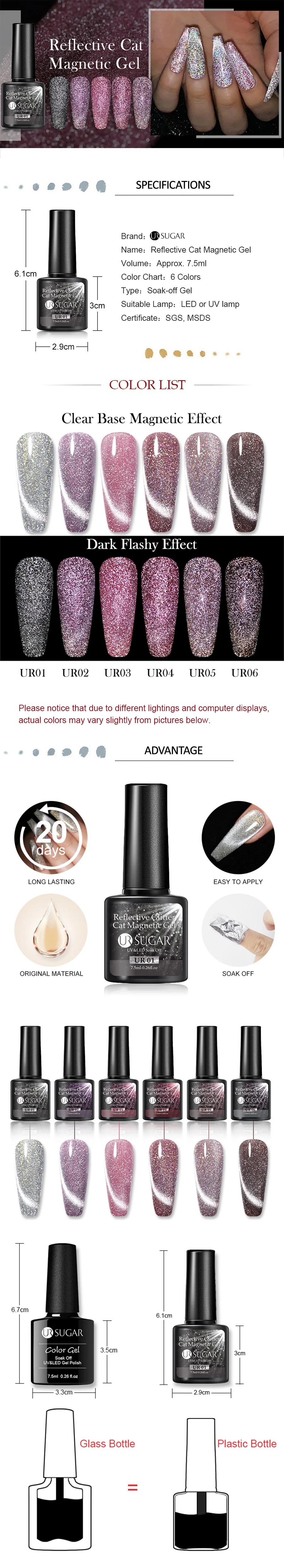 UR SUGAR Серебряный голографический гель отражающий кошачий Гель-лак для использования с магнитом Полупостоянный впитывающий УФ светодиодный дизайн ногтей сделай сам