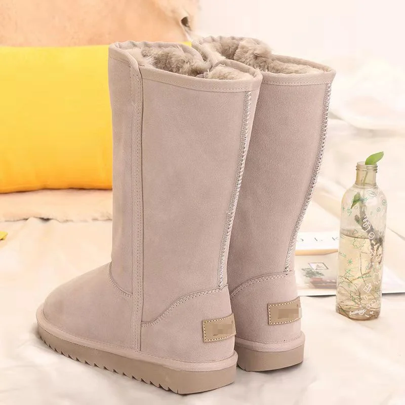 Замшевая кожаная женская обувь, теплые женские зимние ботинки, зимние Плюшевые Пушистые Ботинки на толстой подошве и молнии, повседневные женские ботинки