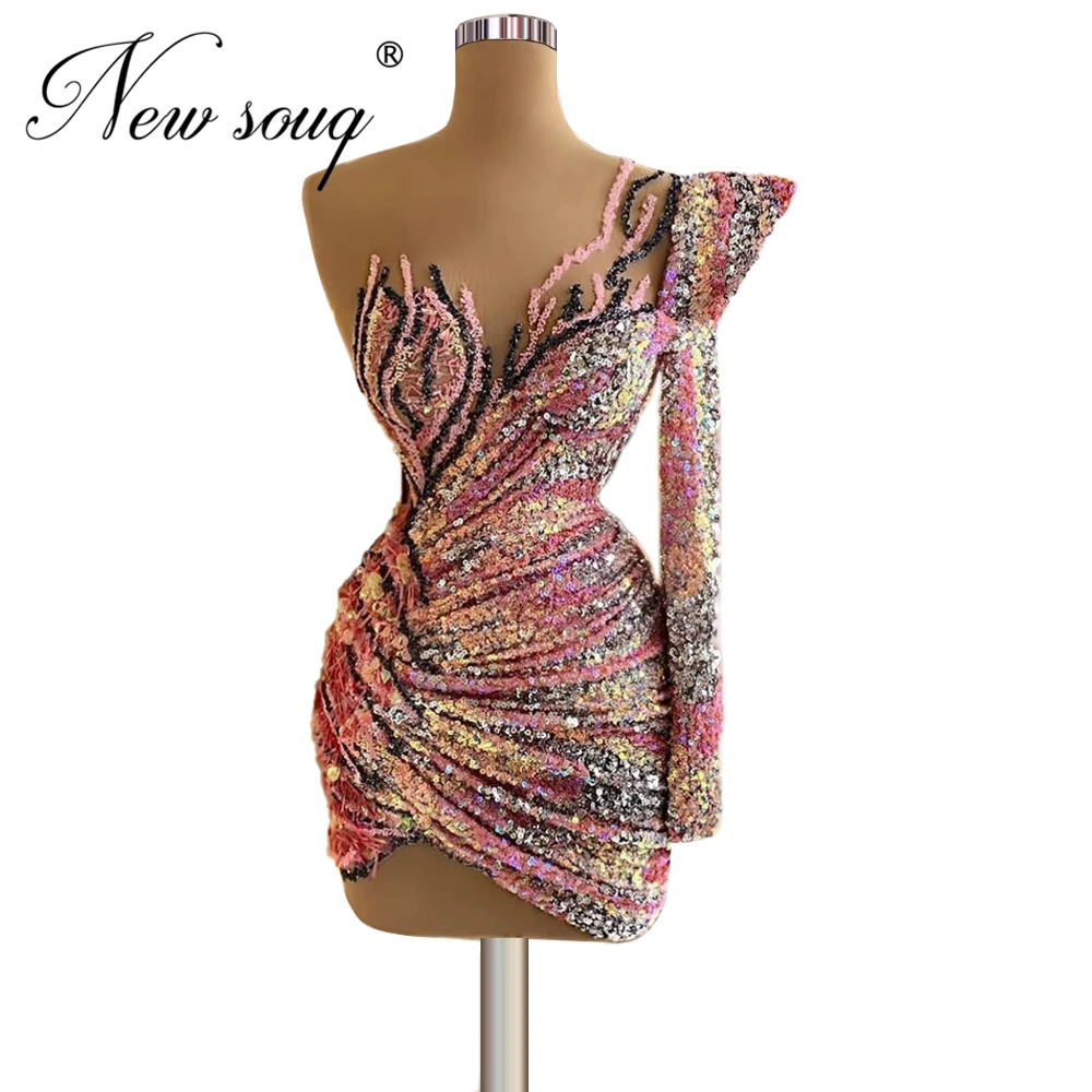 Разноцветные блестящие вечерние Халаты на одно плечо 2022, индивидуальное вечернее платье, нарядные коктейльные платья, вечерняя одежда Дубая