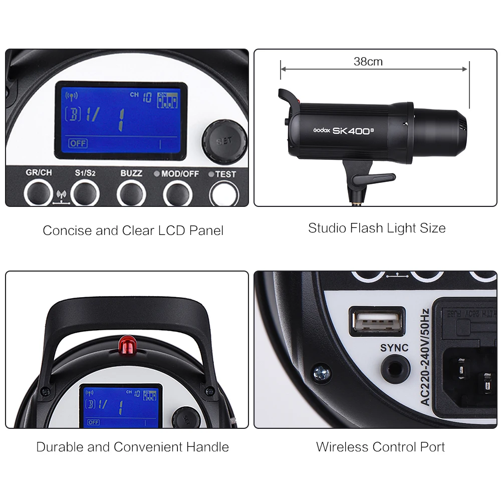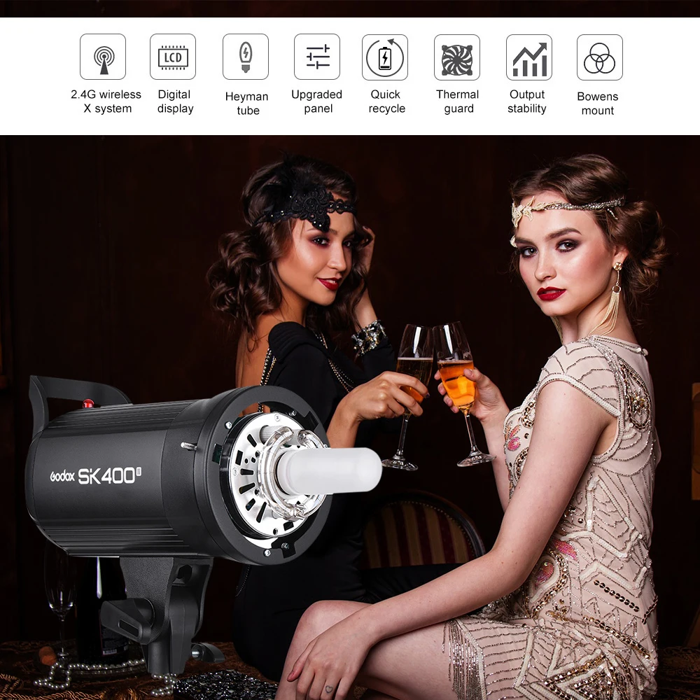 Профессиональная студийная стробоскопическая вспышка Godox SK400II 400Ws GN65 со встроенной беспроводной системой X 2,4G, обновленная творческая съемка SK400