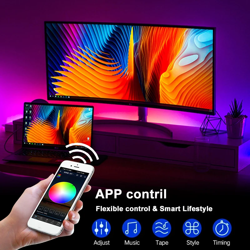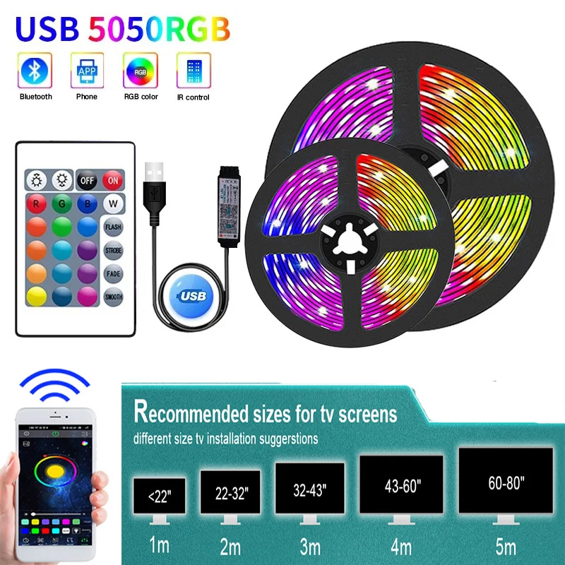 Светодиодная лента RGB 5050 для подсветки телевизора, USB, Bluetooth, 5 м
