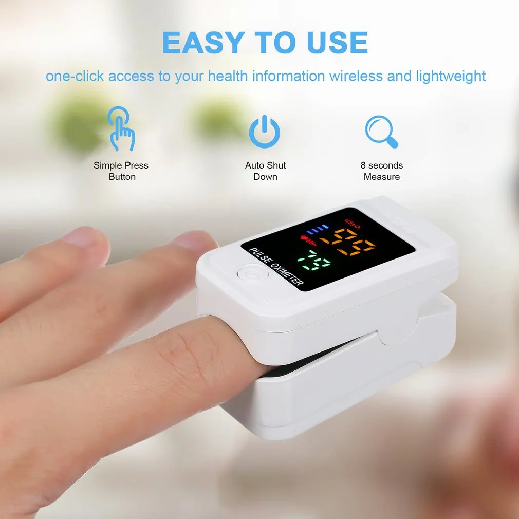 Особенности:1. Подходит для всех возрастов: Этот изысканный дизайн позволяет использовать различные размеры пальцев в любой полости пальца.2. Простота в использовании: саморегулирующийся зажим для пальцев и простая конструкция с одной кнопкой для удобства эксплуатации. Подходит для ежедневного использования, для измерения Вашего здоровья в любое время.3. Портативный и простой в использовании: с легким весом, компактной структурой, его легко носить с собой и использовать дома или на открытом воздухе.4. Измерение одним нажатием кнопки: Наслаждайтесь здоровой жизнью. Перед измерением вставьте палец в оксиметр до конца, а затем нажмите среднюю кнопку, чтобы начать измерение.5. Функция: портативный измерительный прибор в основном завершает Обнаружение значения насыщения кислорода в крови и значения частоты пульса и обеспечивает передовой метод.Описание:Этот оксиметр очень подходит для тестирования скорости SpO2, PI и пульса в спортивных мероприятиях, таких как скалолазание, бег, езда на велосипеде и т. д. последовательные результаты, которые были протестированы и доказаны. Большой цифровой дисплей может быстро получить SpO2 крови, пульс и результаты интенсивности импульса.Характеристики:Тип продукта: Оксиметр кровиМощность: <30 мАМатериал: АБС-пластик + ПоликарбонатДиапазон измерения насыщения кислорода в крови: 70% ~ 99%Точность: ± 2% 70%-99%Дисплей частоты пульса: 30- 240BPM, ± 1% или ± 1BPMАвтоматическое выключение: без вставки пальца, автоматическое выключение на 8 секундРабочая температура: 5-40 ℃Температура хранения: -10-40 ℃Атмосферное давление: 70kPa-106kPaРазмер изделия: 57,8*31,3*35,9 ммИсточник питания: dc.3V(AAA * 2)(не входит в комплект)Посылка включает в себя:1 шт. * оксиметр1 шт. * слинг1 шт. * Руководство пользователя1 шт. * сертификатПримечания:1. Допускается погрешность в 0-1 дюйм из-за ручного измерения. Спасибо за понимание.2. Мониторы не калибруются так же, цвет товара, отображаемый на фотографиях, может немного отличаться от реального объекта.