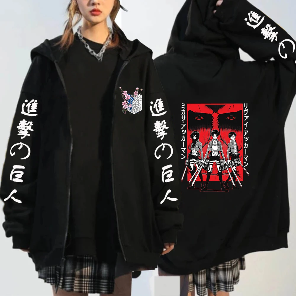 Толстовки с капюшоном на молнии для мужчин и женщин из аниме «атака на Титанов», пальто с длинным рукавом, повседневные топы на молнии Shingeki No Kyojin Mikasa Ackerman