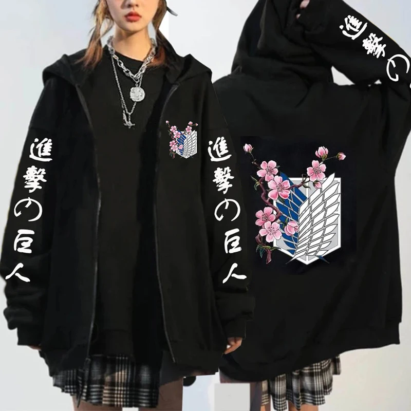 Толстовка на молнии с аниме атака на Титанов для мужчин и женщин, куртки и пальто с длинным рукавом, повседневные топы на молнии