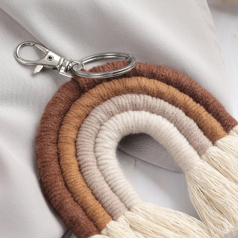 Плетеные брелки Радуга женский брелок ручной работы брелок макраме ...