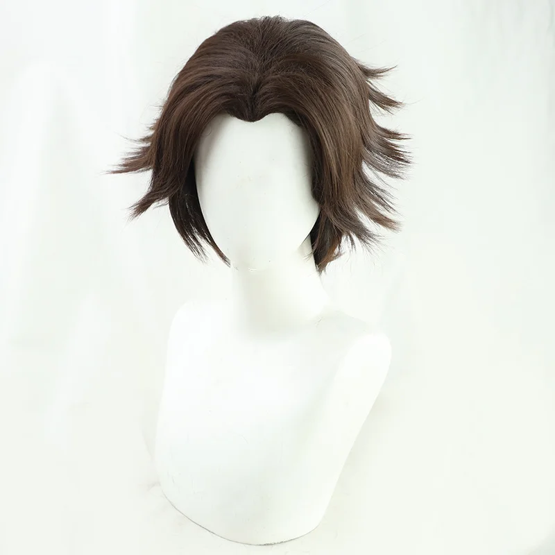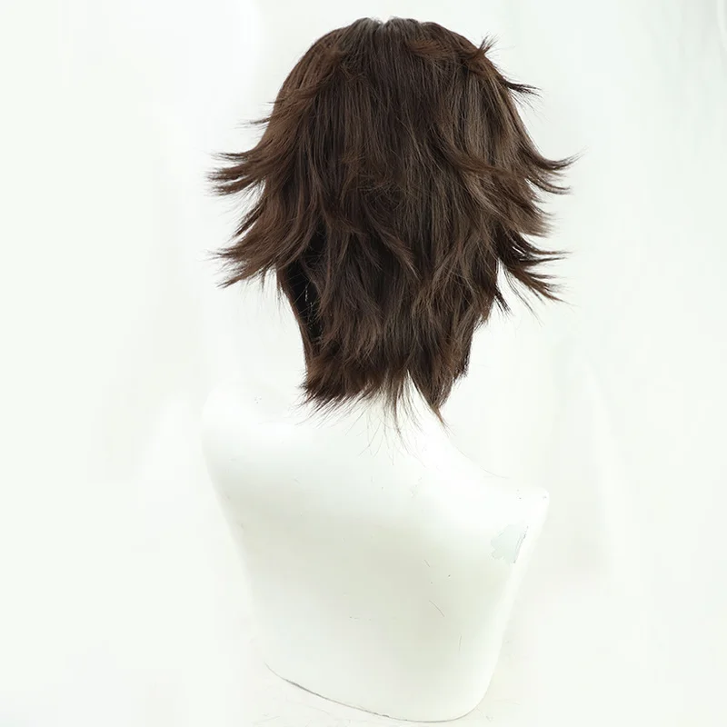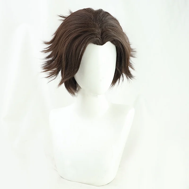 Парик для косплея из коротких коричневых термостойких синтетических волос с бесплатной шапочкой