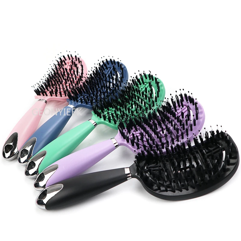 Эта щетина и Нейлоновая Щетка для волос быстро сохнут и легко чистятся. Нескользящая резиновая ручка удобно держать. Он может массировать вашу голову во время расчесывания.