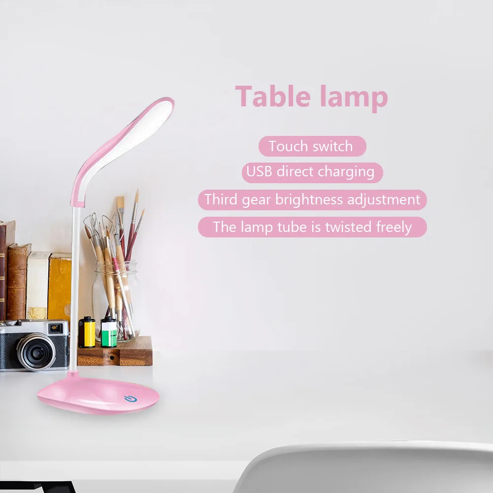 Светодиодная настольная лампа USB для защиты глаз настольные лампы Сенсорные Регулируемые Детские спальные прикроватные складные спальные ночники для чтенияХарактеристика:Сенсорный выключательПрямая зарядка через USBТри режима регулировки яркостиСвободное скручивание лампы.Спецификация:Материал: ПП + светодиодный светильник + шланг из ПВХКоличество лампочек: 14 SMD светодиодовМощность: 3 ВтНоминальное напряжение: 5 ВАккумулятор: аккумулятор 300 мАВес нетто: 0,14 кгРазмер: 175*220*120*100 мм/6,9*8,6*4,7*3,9 дюймовЦвет: розовый, белый, синийПримечание:В связи с различиями мониторов и эффектами освещения реальный цвет товара может немного отличаться от цвета на фотографиях. Спасибо!Возможны отклонения в 1-2 см вследствие измерений вручную.